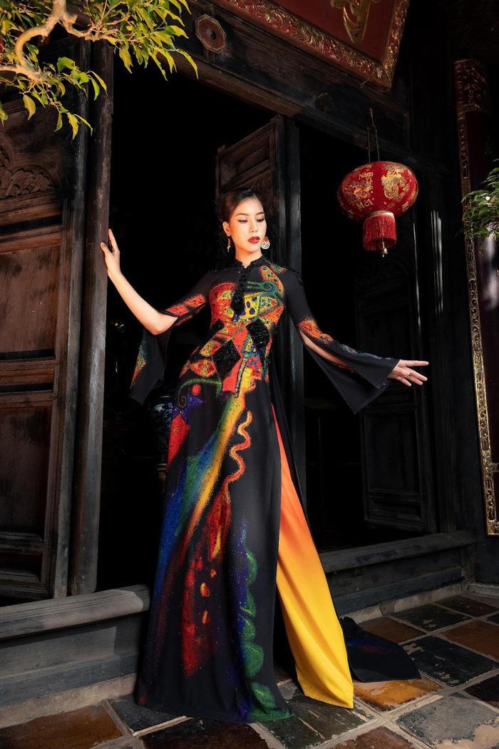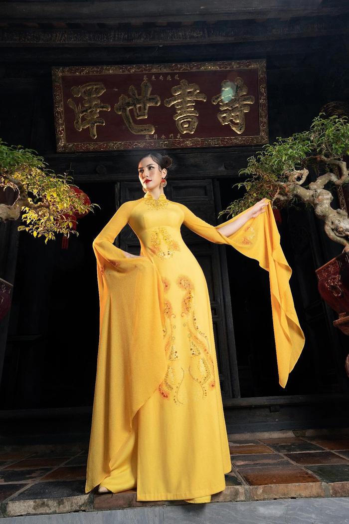 | BST Áo dài "Giấc Mơ" là sự kết hợp của xu hướng thời trang thế giới với tông màu vàng, màu xanh lam, màu cam tạo nên hình ảnh tươi trẻ và sôi động cho những bộ trang phục cho mùa xuân hè |