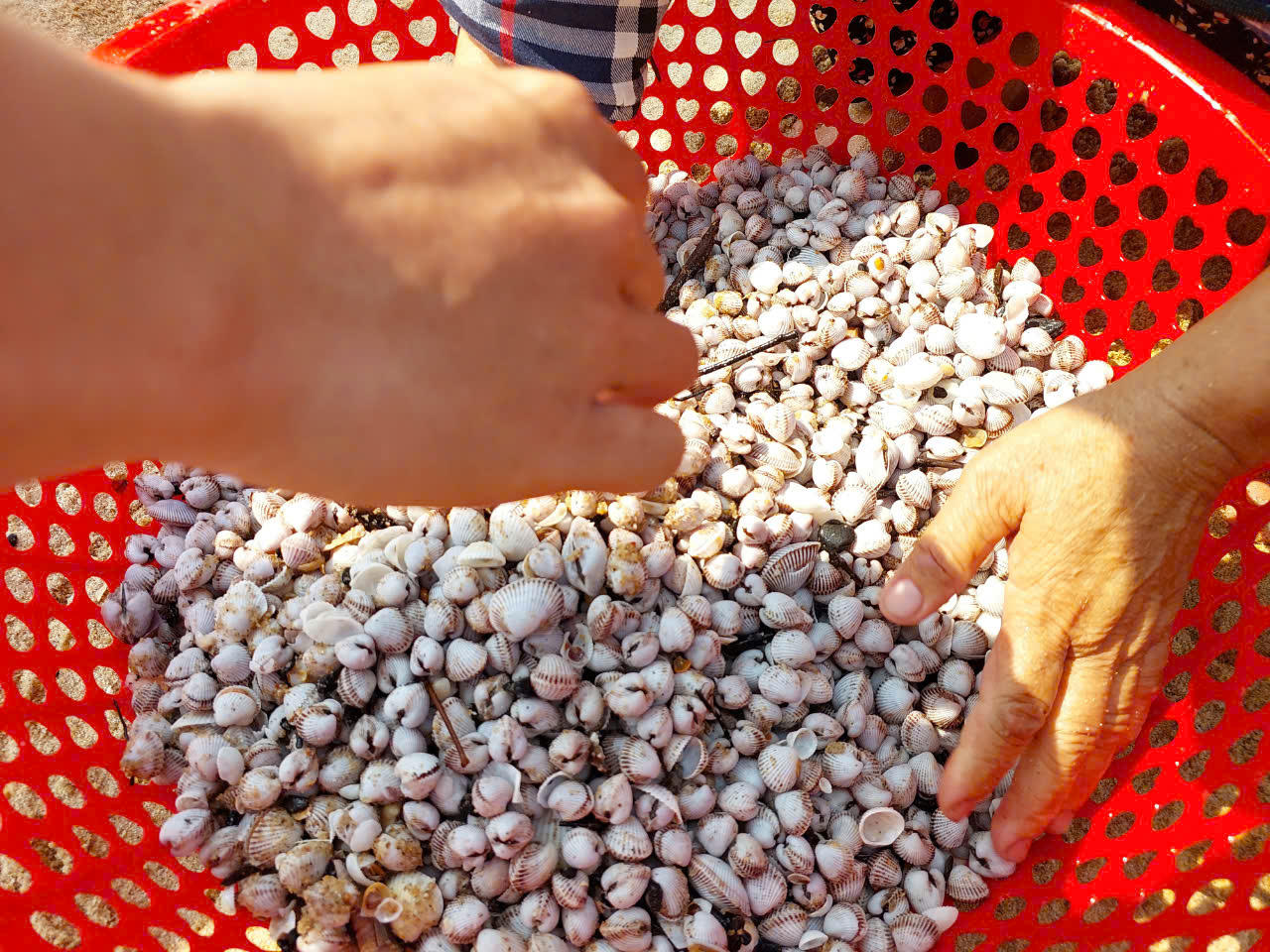 Nhiều người huy động các thành viên trong gia đình cùng đi bắt sò huyết. |