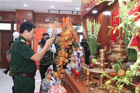 (PLVN) - Sáng / 12, Đoàn công tác Bộ Quốc phòng do Đại tướng Phan Văn Giang, Ủy viên Bộ Chính trị, Phó Bí thư Quân ủy Trung ương, Bộ trưởng Bộ Quốc Phòng đã đến dâng hoa, dâng hương Bàn thờ Chủ tịch Hồ Chí Minh tại Nhà truyền thống Lực lượng vũ trang (LLVT) tỉnh Bình Dương.