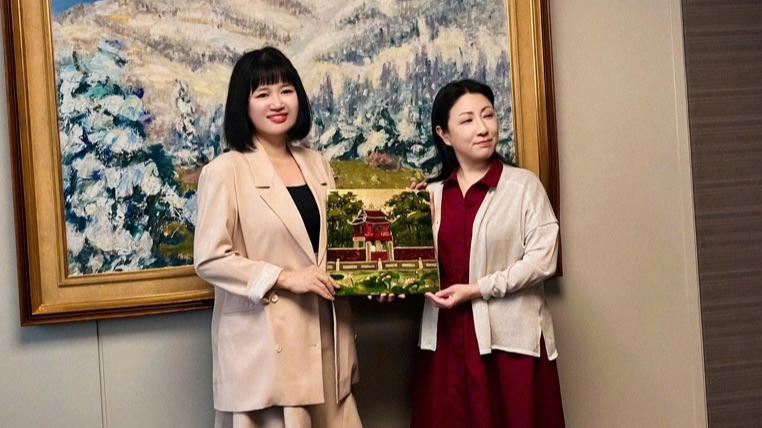 Bà Ngô Quỳnh Hoa - Phó Cục trưởng Cục Phổ biến, giáo dục pháp luật và Trợ giúp pháp lý chụp ảnh lưu niệm với bà Ioro Fujoka - Phó chủ tịch Liên Đoàn Luật sư Nhật Bản. |