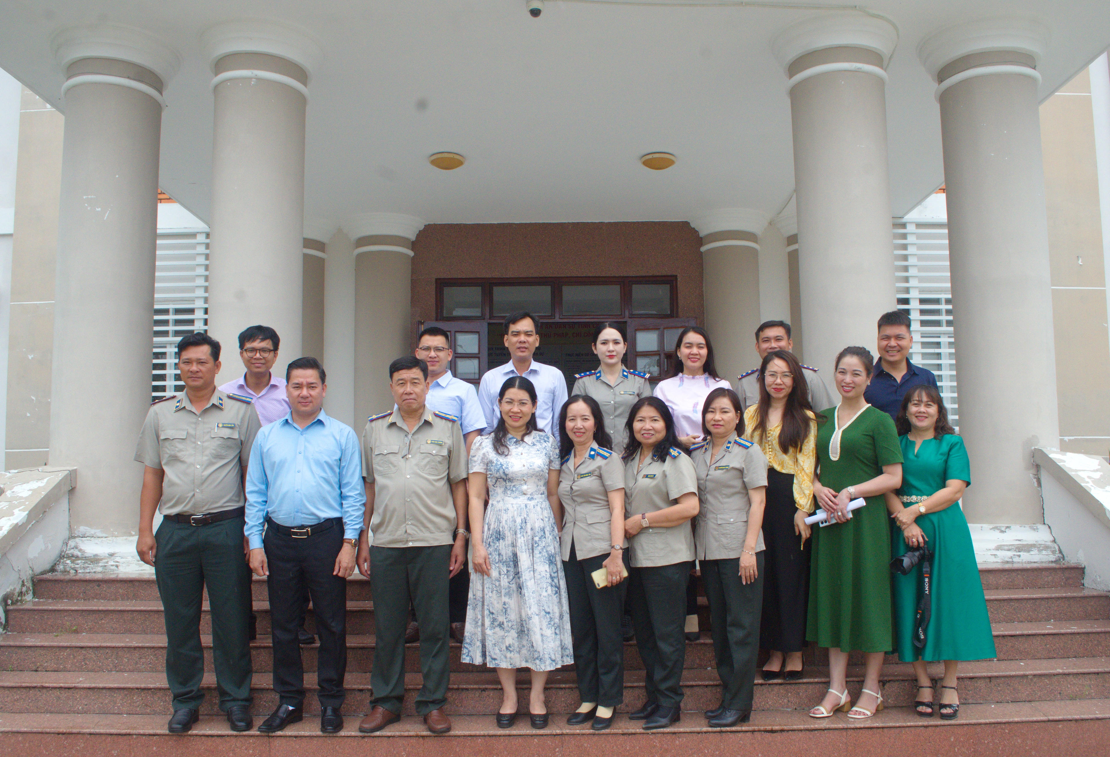 Tổng cục THADS, đại diện Báo Pháp luật Việt Nam và một số cơ quan báo chí chụp ảnh lưu niệm với Cục THADS tỉnh Cà Mau. |