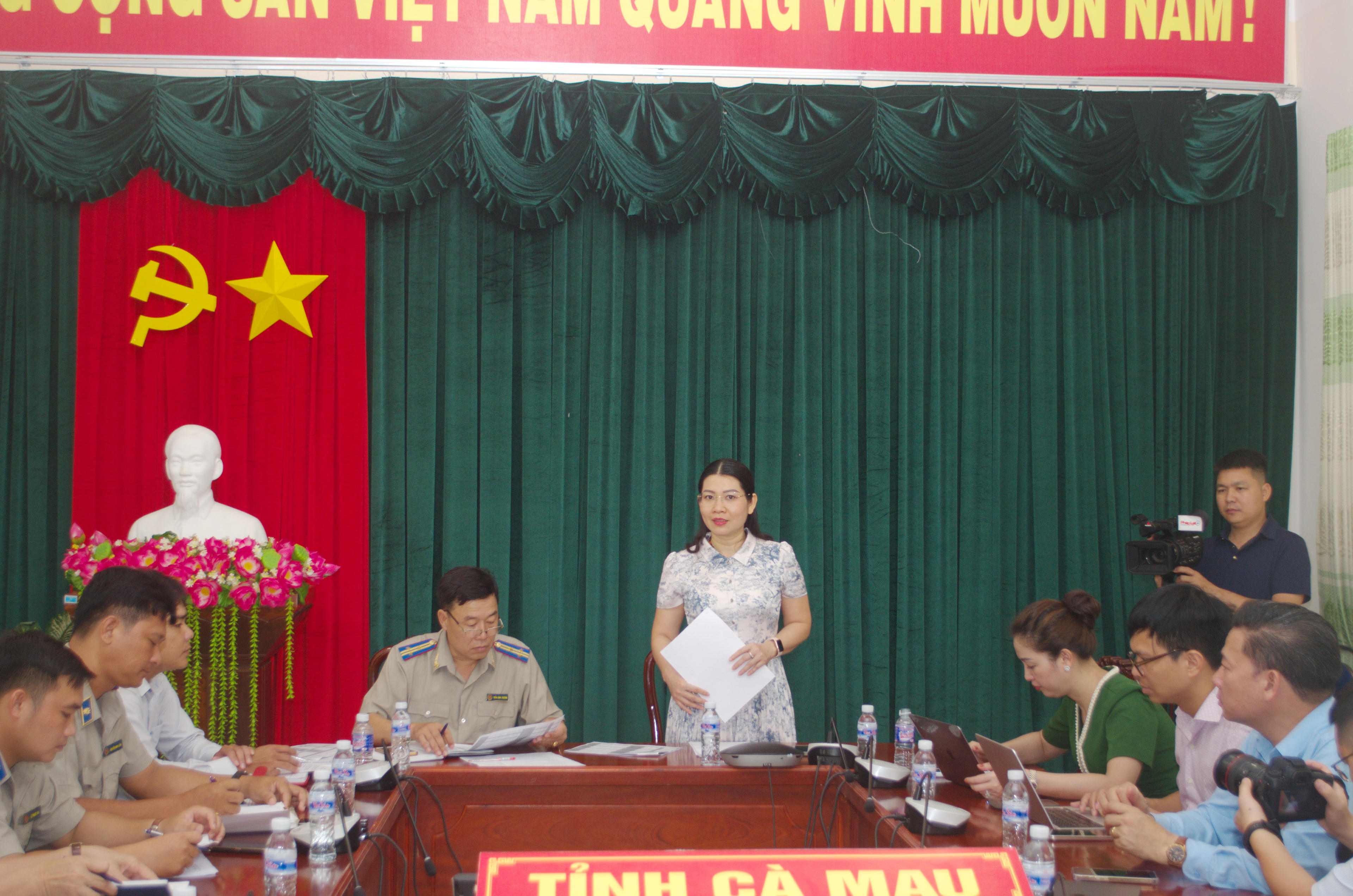 Quang cảnh buổi làm việc của Tổng cục THADS và Báo Pháp luật Việt Nam với một số cơ quan báo chí tại Cục THADS tỉnh Cà Mau. |