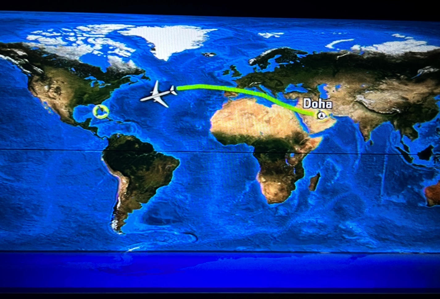 Hình ảnh chuyến bay QR 777 khởi hành từ Doha ngày 28/10/2022 đi Miami (Hoa Kỳ) trên màn hình của Hãng Qatar Airway.