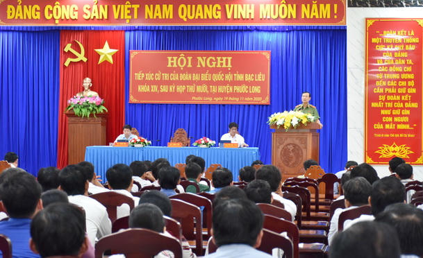 (PLVN) - Thực hiện chương trình tiếp xúc cử tri sau kỳ họp, ngày 19/10, Đoàn đại biểu Quốc hội tỉnh Bạc Liêu đã đến tiếp xúc với cử tri tại 2 huyện Hồng Dân và Phước Long (Bạc Liêu).