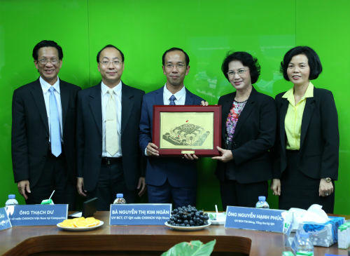 | Chủ tịch Quốc hội Nguyễn Thị Kim Ngân tặng quà lưu niệm cho ông Mai Hoài Anh – Chủ tịch Hội đồng Quản trị công ty sữa Angkor |