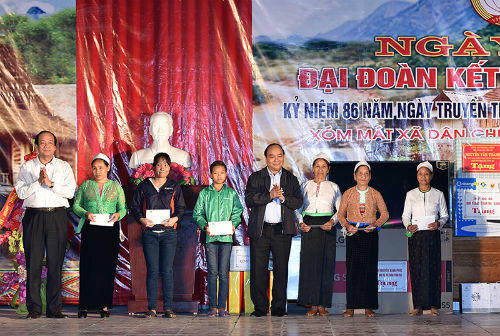 Tại Ngày hội, Thủ tướng Nguyễn Xuân Phúc, Phó Chủ tịch, Tổng Thư ký Ủy ban Trung ương Mặt trận Tổ quốc Việt Nam Trần Thanh Mẫn, Bộ trưởng, Chủ nhiệm Văn phòng Chính phủ Mai Tiến Dũng, lãnh đạo tỉnh Hòa Bình đã trao quà cho khu xóm và các hộ gia đình, cá nhân có hoàn cảnh khó khăn./.