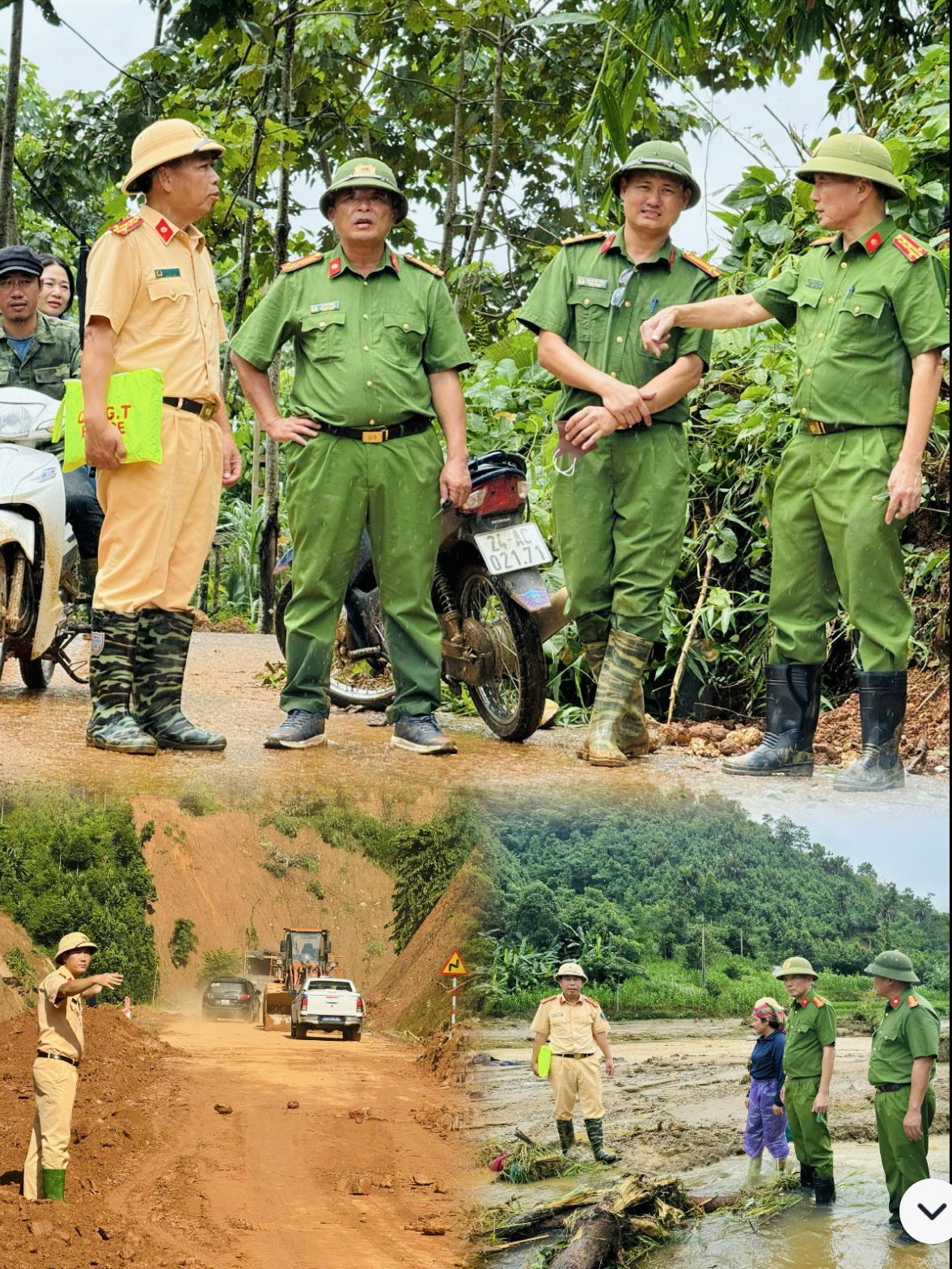 Tất cả hệ thống chính trị vào cuộc như đội ngũ các y, bác sỹ cũng đã tới tận vùng “rốn” lũ để cứu chữa người kịp thời. Những người lính cứu hộ bới đất để cứu người bị vùi do sạt lở. Màu áo xanh tình nguyện có mặt khắp các tuyến đường, từng bản làng, cùng nhân dân dọn dẹp, khắc phục các điểm xung yếu, sạt lở...