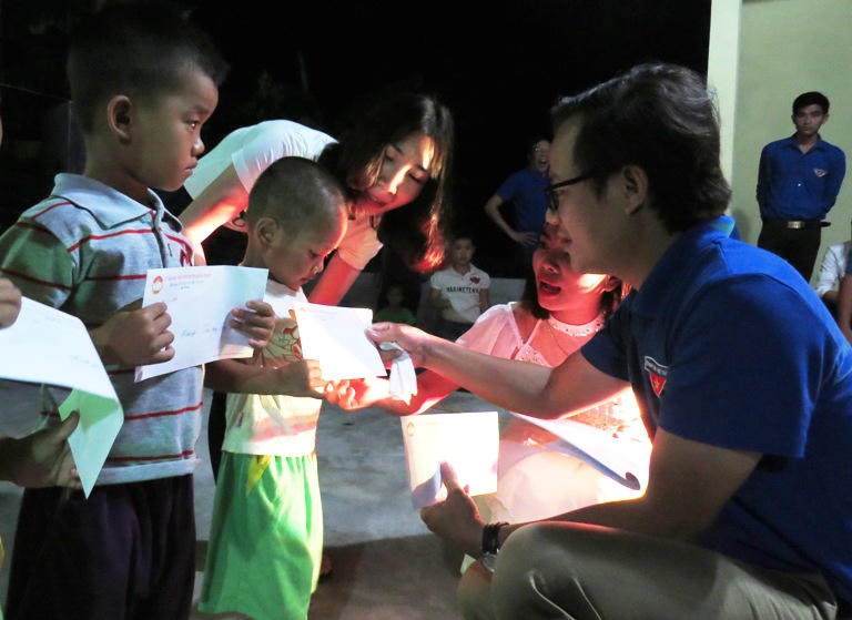 Tại chương trình “Trung thu yêu thương”, các đoàn viên thanh niên đã trao 300 suất quà trung thu gồm bánh kẹo, sữa cho các em lớp mầm non và 30 suất học bổng cho các em học sinh tiểu học và THCS có hoàn cảnh đặc biệt khó khăn ở xã này.