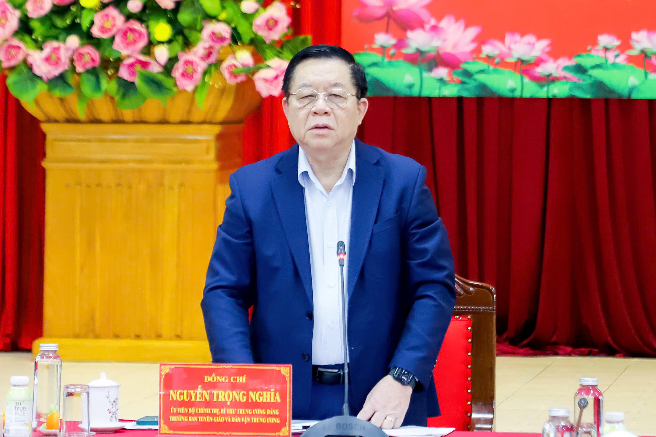 Phát biểu tại buổi làm việc, Ủy viên Bộ Chính trị, Bí thư Trung ương Đảng, Trưởng Ban Tuyên giáo và Dân vận Trung ương Nguyễn Trọng Nghĩa đánh giá cao tỉnh Nghệ An trong việc thực hiện các Nghị quyết số 18, Chỉ thị số 35, Nghị quyết số 57, Kết luận số 123. Đồng thời nhấn mạnh, nhiệm vụ quan trọng, cấp bách nhất hiện nay của Đảng là việc sắp xếp tổ chức bộ máy nên đòi hỏi các cấp ủy đảng, chính quyền Nghệ An phải có quyết tâm chính trị cao nhất, triển khai đúng tiến độ đề ra, tạo sự đồng thuận hơn nữa trong đảng, trong dân. Trong quá trình triển khai cần tiếp tục nắm bắt dư luận, kịp thời phát hiện những phát sinh và cảnh giác với âm mưu của thế lực thù địch.