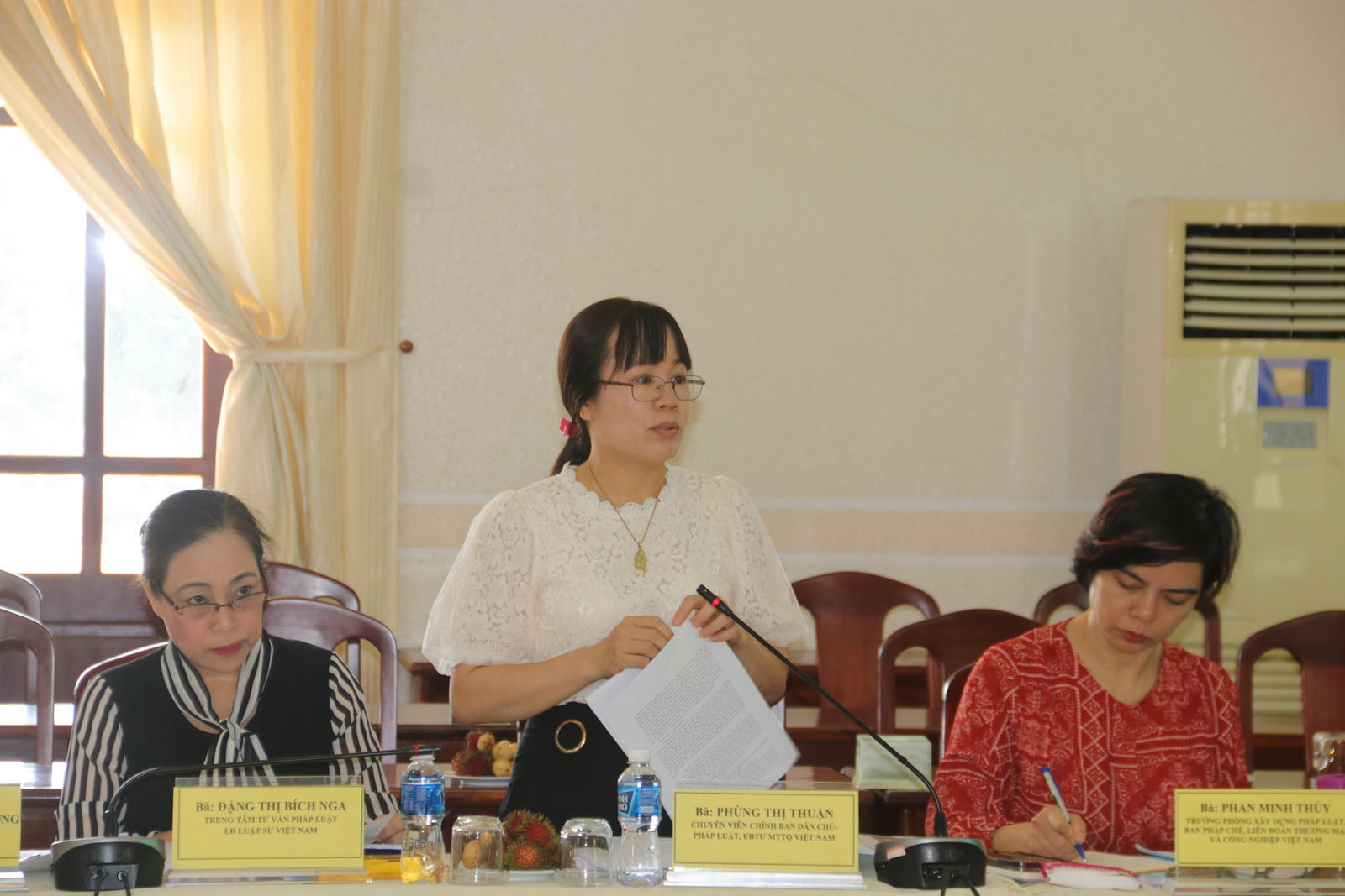 Bà Phùng Thị Thuận - Chuyên viên chính Ban Dân chủ - Pháp luật UBTWMTTQ Việt Nam yêu cầu làm rõ nhiều vấn đề quan trọng về công tác PBGDPL của địa phương |