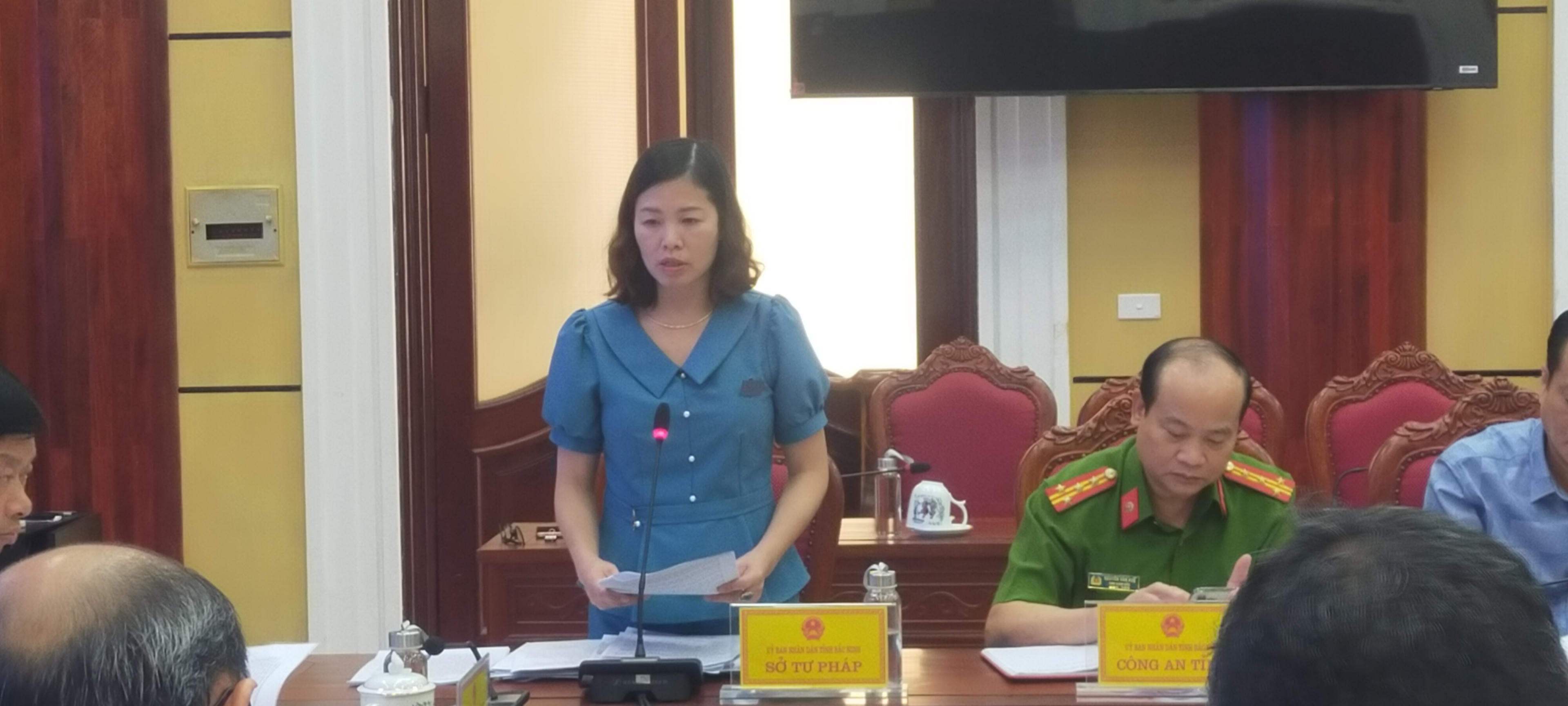 Phó Giám đốc Sở Tư Pháp tỉnh Bắc Ninh Đoàn Thị Hồng Nhung báo cáo công tác thực hiện đề án 250 (Ảnh: Hoàng Tùng) |