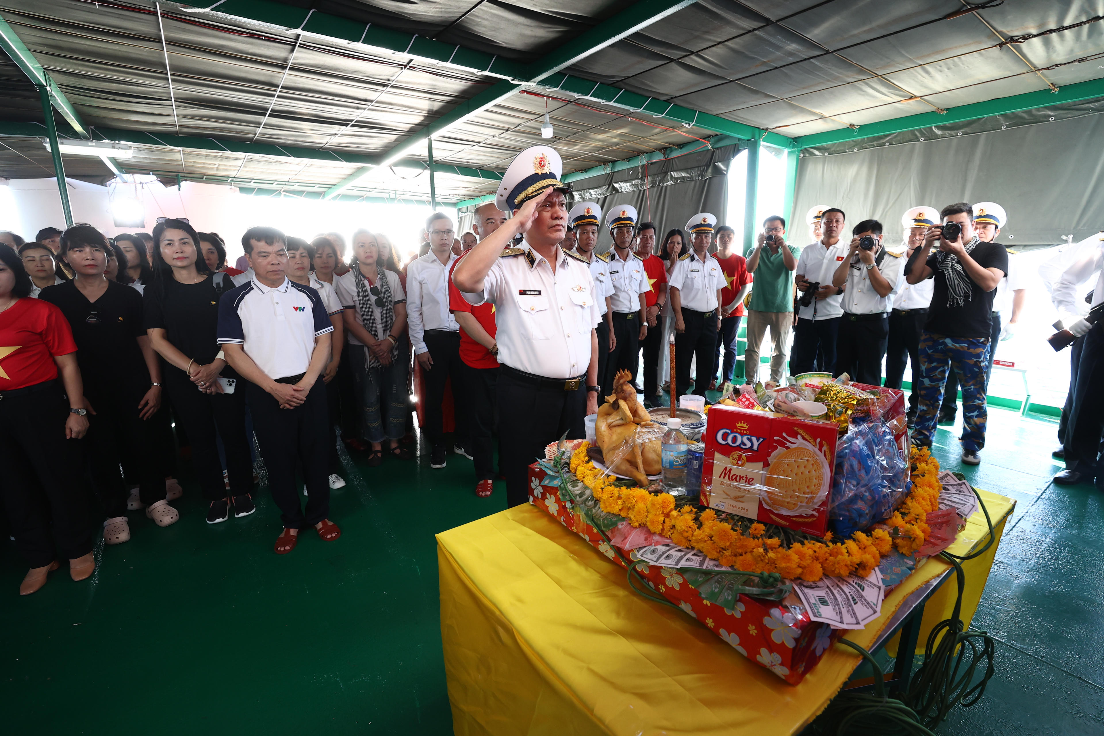 Lễ tưởng niệm các anh hùng liệt sỹ hy sinh vì chủ quyền biển đảo trên tàu 561. Ảnh: Phan Hải |