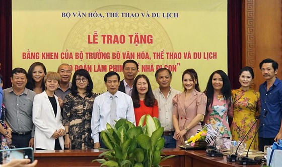 Êkip đoàn làm phim Về nhà đi con tại lễ trao bằng khen của Bộ VH-TT&DL