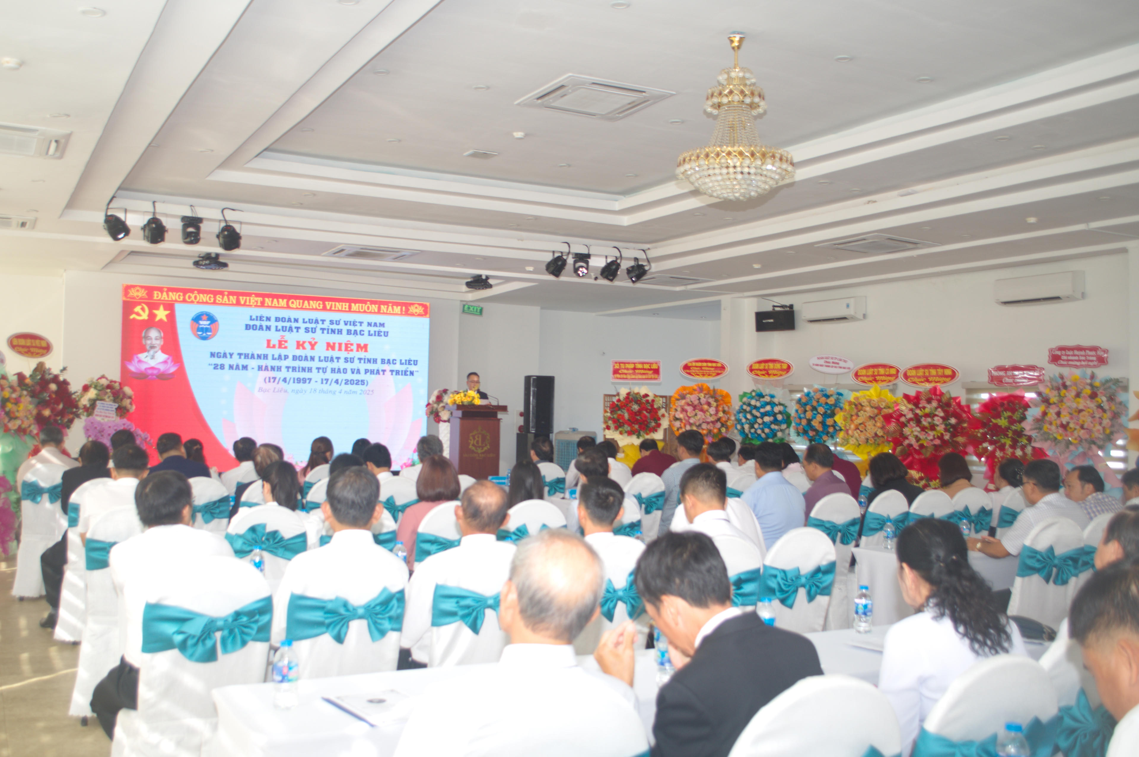 Thay mặt Liên đoàn Luật sư Việt Nam, Luật sư, Đào Ngọc Chuyền - Phó Chủ tịch Liên Đoàn Luật sư Việt Nam, Chủ nhiệm Đoàn Luật sư thành phố Hà Nội: Biểu dương và đánh giá cao những đóng góp to lớn của các thế hệ Luật sư Bạc Liêu trong suốt 28 năm qua. Trong đó, các Luật sư đã tích cực tham gia bảo vệ quyền và lợi ích hợp pháp của công dân, tổ chức, doanh nghiệp; góp phần quan trọng vào công cuộc xây dựng Nhà nước pháp quyền xã hội chủ nghĩa, bảo vệ công lý, giữ gìn trật tự, an toàn xã hội.