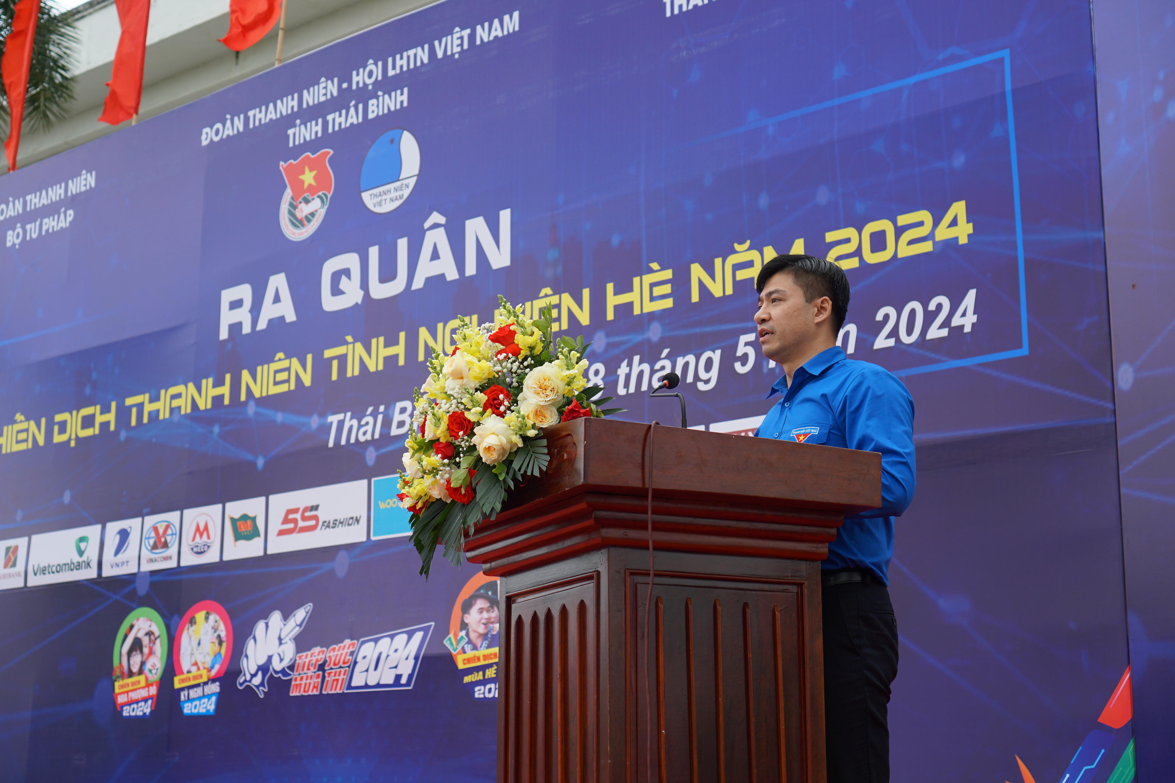 Hôm nay, ngày 18/5, tại Quảng trường 14-10, thành phố Thái Bình, tỉnh Thái Bình, Ban Thường vụ Đoàn Bộ Tư pháp đã phối hợp cùng Tỉnh đoàn Thái Bình và Đoàn Thanh niên Tập đoàn Công Nghiệp Than khoáng sản Việt Nam tổ chức Lễ Phát động Chiến dịch Thanh niên tình nguyện hè 2024.