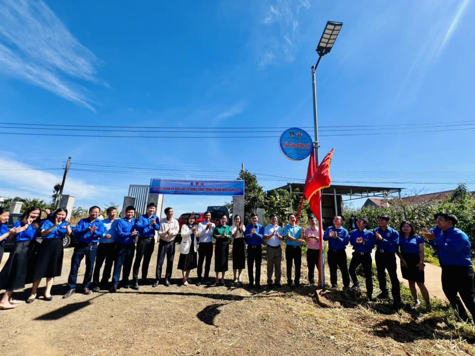 Gắn biển công trình thanh niên “Thắp sáng đường quê”. |