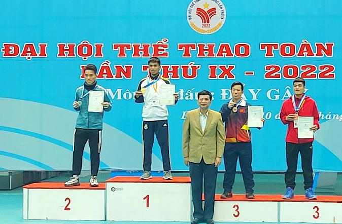 | VĐV Nguyễn Đức Nguyện (Đoàn Thái Nguyên) giành Huy chương Vàng môn đẩy gậy, hạng cân 63kg nam |
