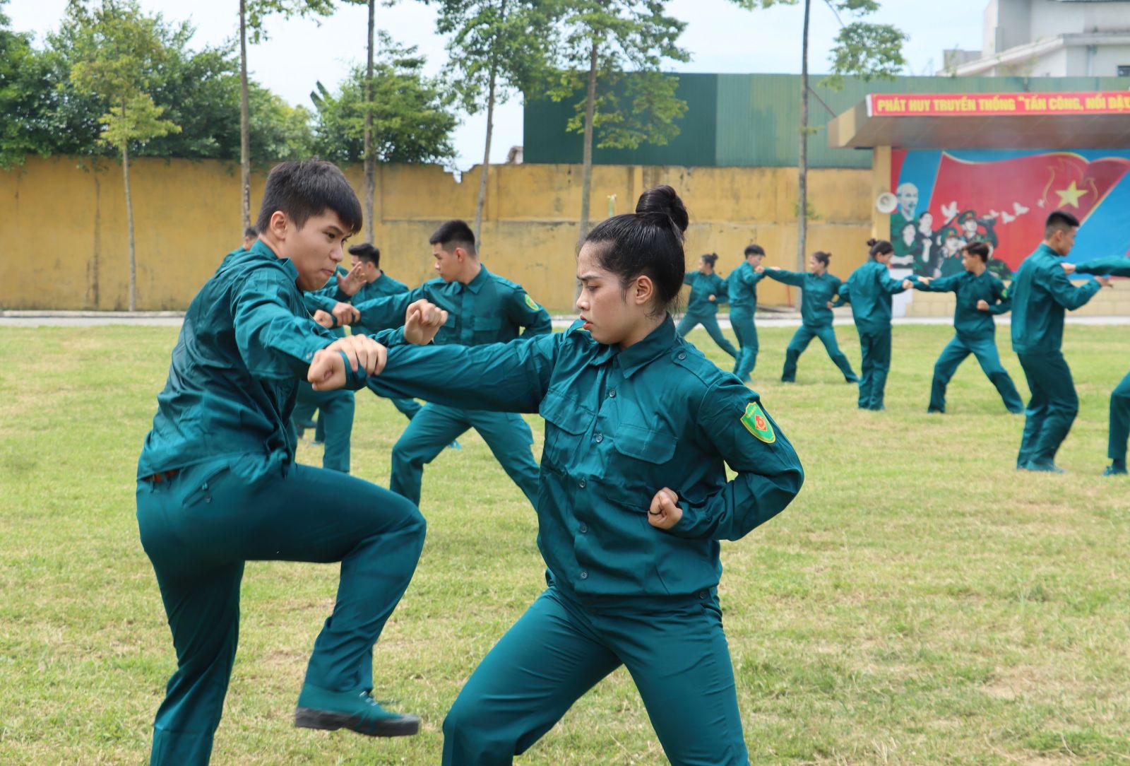 Đoàn tham quan biểu diễn võ thuật Đại đội 20 trinh sát và lực lượng dân quân thành phố Huế (ảnh: Trần Tình). |