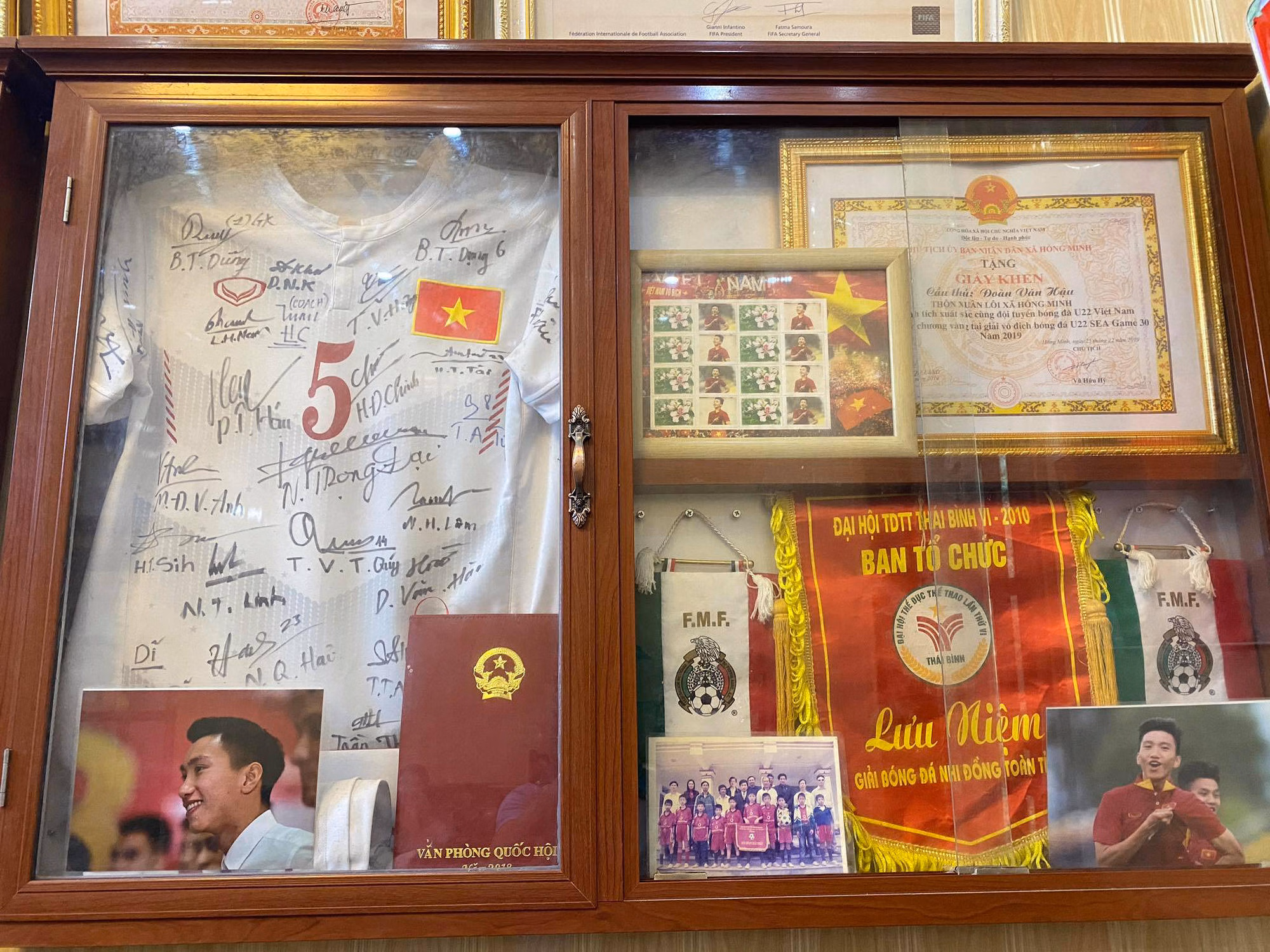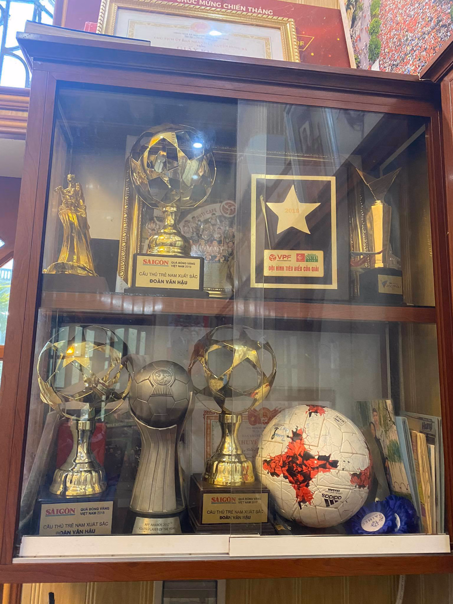 Ngôi nhà mái bằng sạch sẽ, thoáng mát của gia đình Văn Hậu ở xã Hồng Minh, huyện Hưng Hà, tỉnh Thái Bình lưu giữ bộ sưu tập thành tích "khủng" của anh...