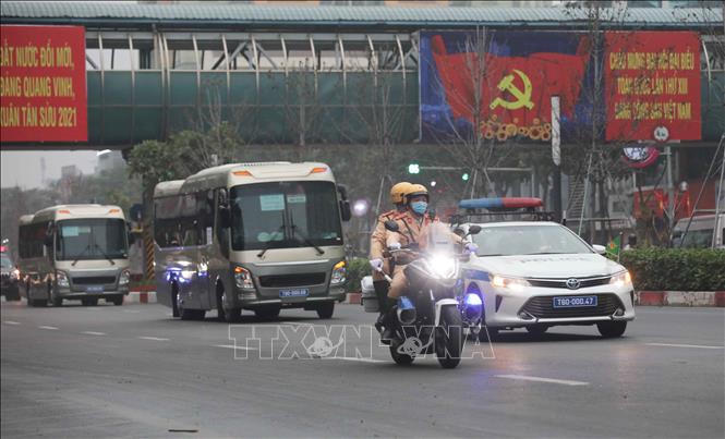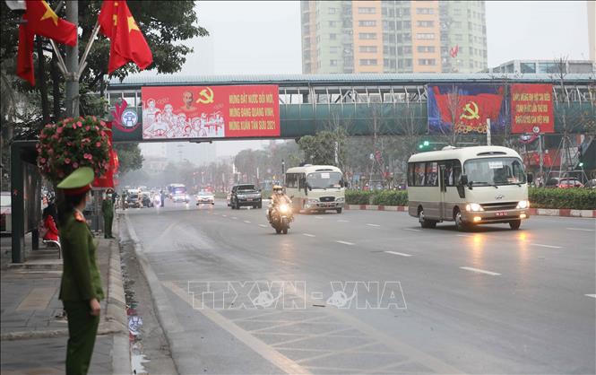 Ngay từ 5 giờ ngày 25/1, lực lượng Cảnh sát giao thông cùng các đơn vị thuộc Công an thành phố và Bộ Tư lệnh Thủ đô Hà Nội đã tập trung 100% quân số, có mặt tại các vị trí được phân công để tiến hành làm công tác chuẩn bị đón dẫn, đảm bảo tuyệt đối an toàn cho đoàn các đại biểu tham dự Đại hội lần thứ XIII của Đảng.