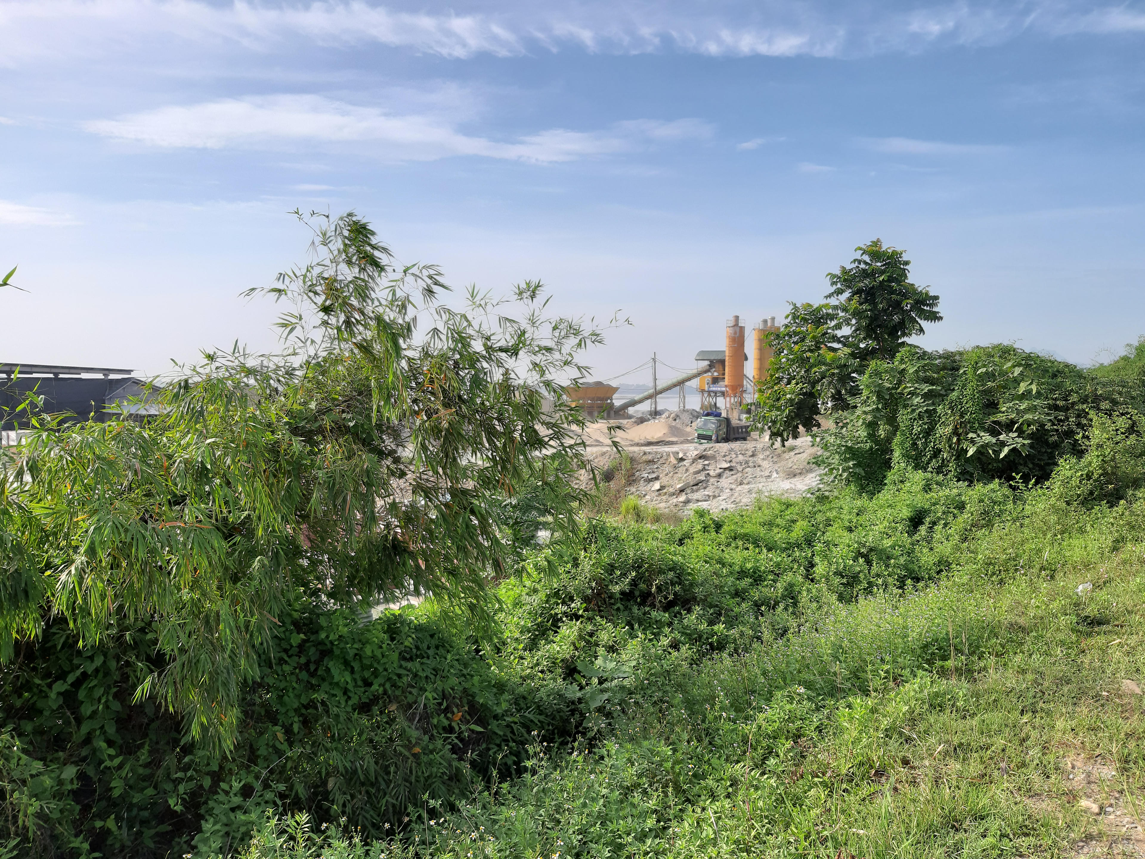 Có mặt tại khu vực bờ đê Tả Thao, xã Cao Xá, PV Báo PLVN tận mắt thấy các hoạt động của công ty CP Thượng Long đang diễn ra hết sức rầm rộ. Các hạng mục nhà xưởng sản xuất gạch hoạt động hết công suất, trạm trộn bê tông có công suất lên tới vài chục m3 mỗi giờ, cùng với đó là hàng loạt xe ô tô tải nối đuôi nhau ra vào chở gạch, cát sỏi, bê tông dẫn đến tình trạng khói bụi, tiếng ồn gây ô nhiễm trầm trọng...