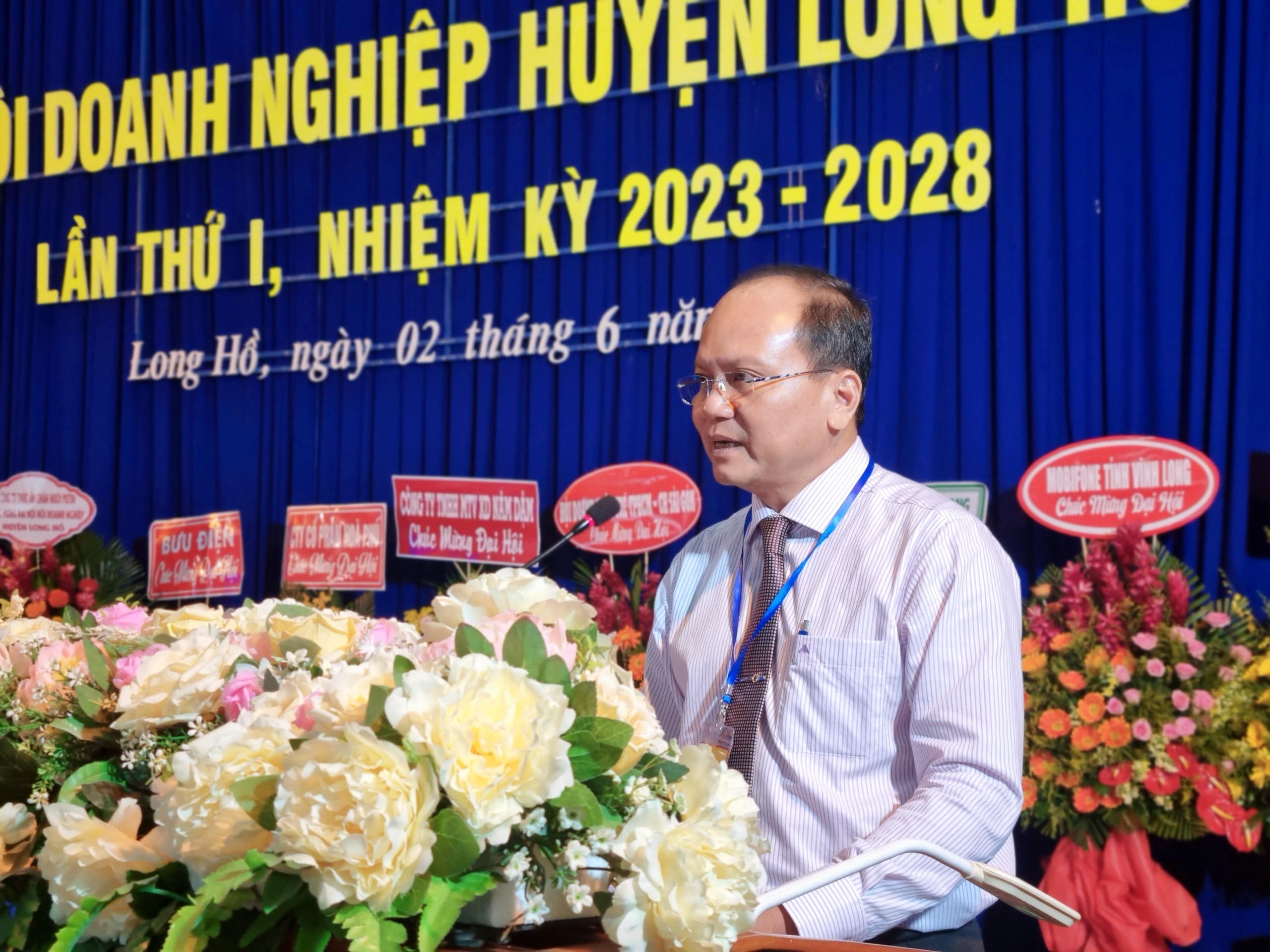 Phát biểu chỉ đạo, Phó Chủ tịch UBND huyện Long Hồ Võ Trung Sơn yêu cầu Hội Doanh nghiệp huyện Long Hồ cần tạo điều kiện cho doanh nghiệp hoạt động có hiệu quả, tạo sức cạnh tranh cao; phát huy vai trò là cầu nối doanh nghiệp với chính quyền các cấp, nhằm góp phần tháo gỡ khó khăn vướng mắc trong sản xuất kinh doanh; tích cực tham gia thúc đẩy phong trào khởi nghiệp trên địa bàn; đồng thời quan tâm hơn nữa đến người lao động… Từ đó xây dựng nên hình ảnh đội ngũ doanh nghiệp huyện Long Hồ năng động, sáng tạo cùng với môi trường cạnh tranh lành mạnh.