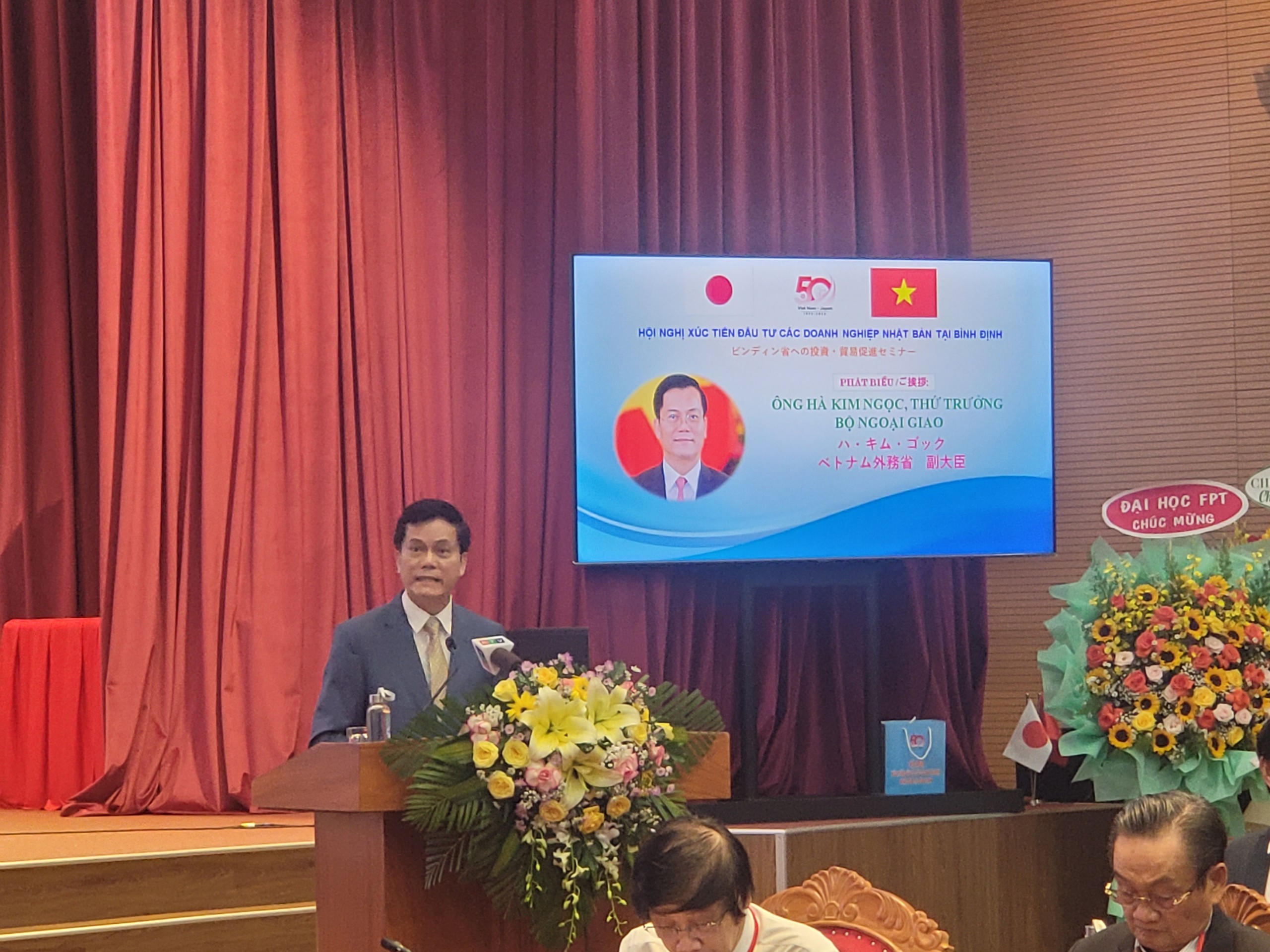 Phát biểu khai mạc Hội nghị, ông Hồ Quốc Dũng Bí thư Tỉnh ủy tỉnh Bình Định cho biết: Trải qua chặng đường 50 năm kể từ ngày thiết lập quan hệ ngoại giao (21/9/1973 - 21/9/2023), tỉnh Bình Định đã kết nối và thiết lập được các mối quan hệ hợp tác hữu nghị, thu hút đầu tư với nhiều địa phương, doanh nghiệp, đối tác quan trọng đến từ Nhật Bản như thành phố Sakai và vùng Kansai (2013), thành phố Izumisano, phủ Osaka (2019); thị trấn Yoshino, tỉnh Nara và sắp tới là thành phố Ashikaga, tỉnh Tochigi.