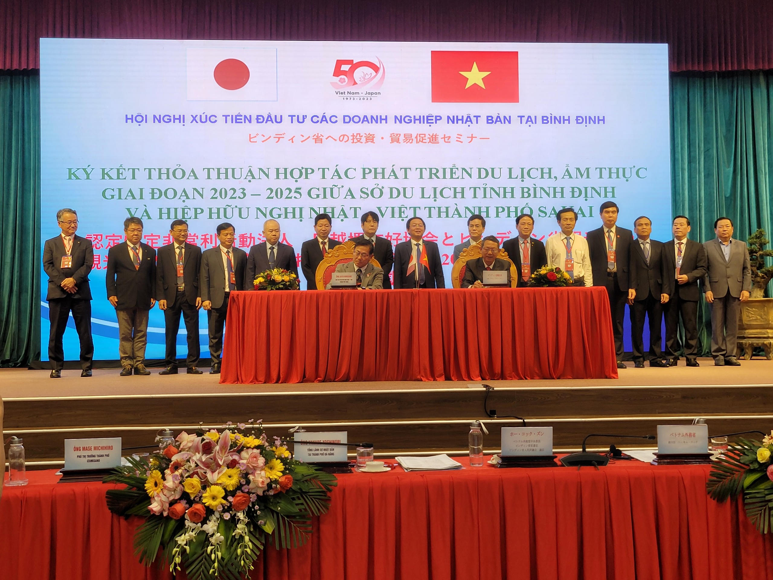 Trong khuôn khổ Hội nghị lần này cũng đã diễn ra Lễ ký kết thỏa thuận hợp tác phát triển du lịch, ẩm thực giai đoạn 2023-2025 giữa Sở Du lịch Bình Định và Hội hữu nghị Nhật-Việt thành phố Sakai; Biên bản ghi nhớ thiết lập mối quan hệ hữu nghị hợp tác giữa UBND huyện Vĩnh Thạnh và Chính quyền thị trấn Yoshino, tỉnh Nara, Nhật Bản; Hợp đồng xuất nhập khẩu viên nén có giá trị 235 triệu USD và Bản ghi nhớ đầu tư xây dựng Nhà máy sản xuất viên nén sinh học từ cây cỏ voi giá trị đầu tư 15 triệu USD giữa Công ty Cổ phần Năng lượng sinh học Phú Tài và Tập đoàn Erex; Lễ ký kết Hợp đồng cung ứng lao động theo chương trình thực tập sinh kỹ năng giữa Công ty TNHH Một thành viên HR PISICO và Nghiệp đoàn TMJ KyouDou Kumiai; Lễ ký kết Biên bản hợp tác về cung ứng nguồn lao động làm việc tại Nhật Bản giữa Tập đoàn Kato Hitoshi General Office và Công ty Cổ phần Thương mại và Hợp tác nhân lực TQC quốc tế; Lễ ký kết Biên bản ghi nhớ mua bán viên nén với khối lượng khoảng 200.000 tấn/năm giữa Công ty CP Nhơn Tân Holdings và Công ty TNHH Marubeni Lumber.