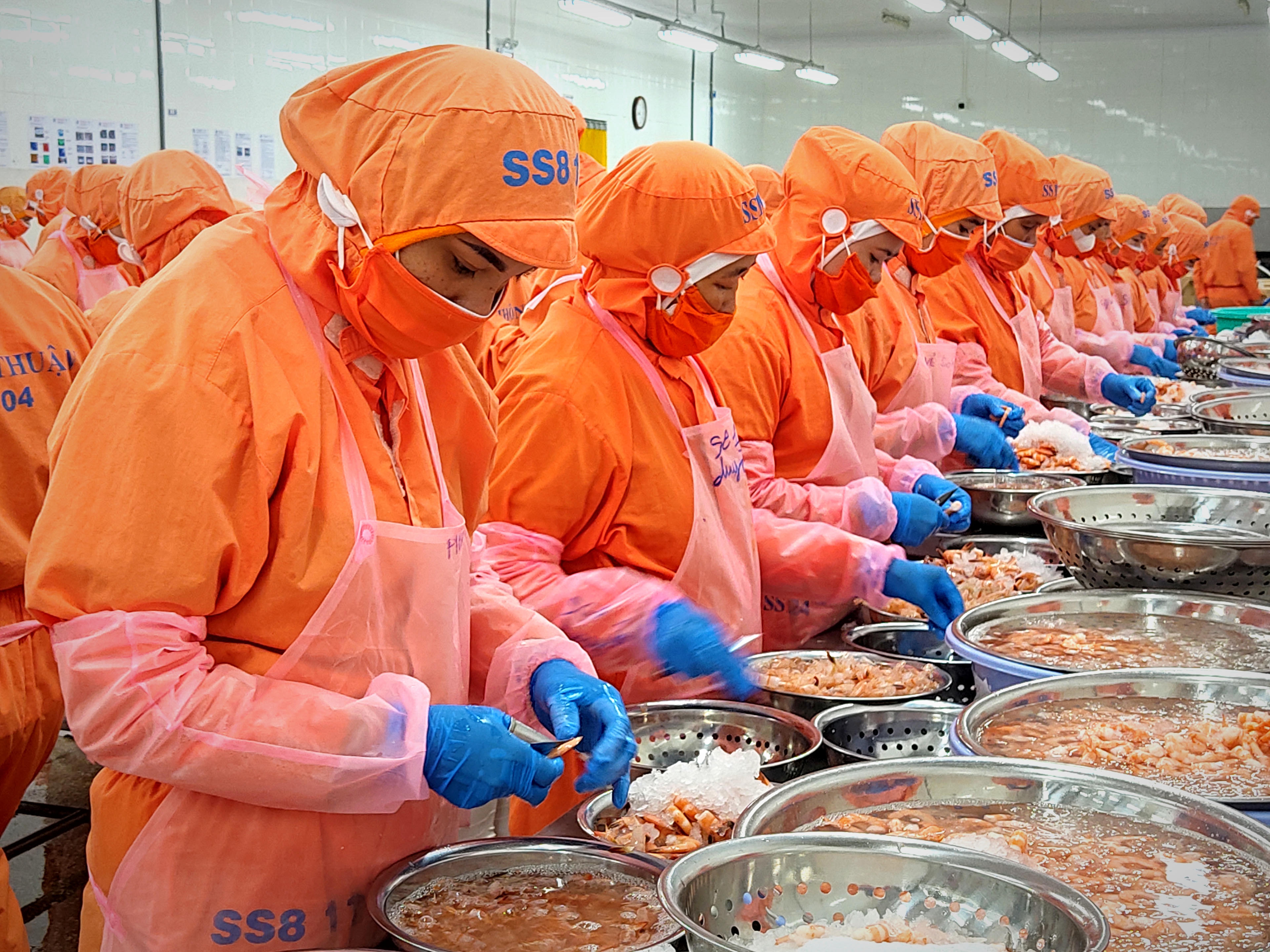 Công ty Cổ phần thủy sản Thông Thuận (gọi tắt Công ty Thông Thuận) ở thị xã Duyên Hải, tỉnh Trà Vinh những ngày này bắt đầu đều đặn sản xuất theo đơn hàng. Theo đại diện công ty, tình trạng khó khăn thiếu đơn hàng bắt đầu diễn ra từ cuối quý 4/2022 đến quý 1/2023. Đối mặt với tình hình đó, công ty Thông Thuận vẫn giữ tiêu chí "không bỏ lại ai phía sau" nên đề ra phương án dàn trải đơn hàng nhằm đảm bảo cho hơn 250 công nhân đều có việc làm, không ai phải thất nghiệp.