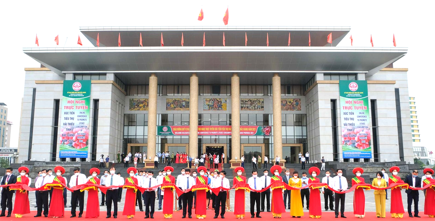 Hội nghị trực tuyến tiêu thụ vải thiều 2021 Bắc Giang. |
