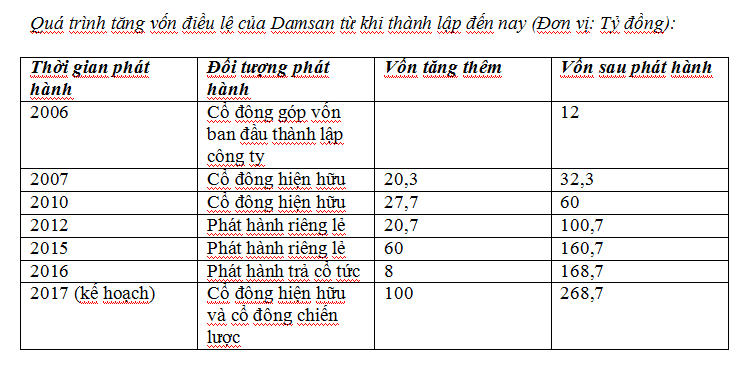 Samsan ra đời năm ra đời từ năm 2006. Ngay từ những ngày đầu khởi nghiệp, cha đẻ của Damsan - doanh nhân Vũ Huy Đông - đã nghĩ ngay về đường hướng của một doanh nghiệp hiện đại. Không chấp nhận những cái cũ kỹ, lạc hậu, ông quyết định đầu tư dây truyền công nghệ hiện đại nhất, tiên tiến nhất từ các quốc gia như Đức, Thụy Sỹ, Italia, Nhật Bản…