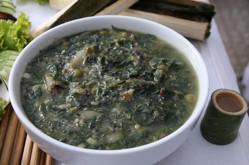 Món canh bon da trâu, được làm từ cây bon (hay còn gọi là cây khoai nước) kết hợp với các gia vị như: Quả cà đắng, ớt, tỏi, mắc khén, hành củ, muối, mì chính, lá lốt...