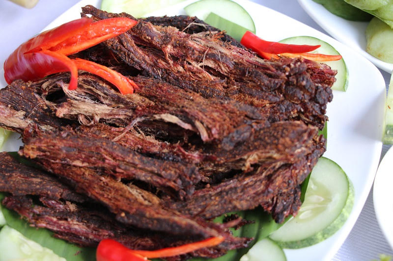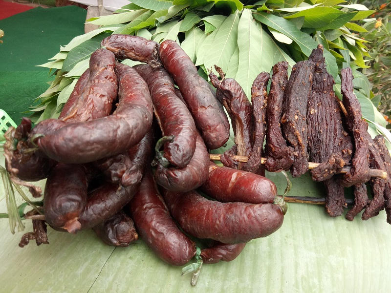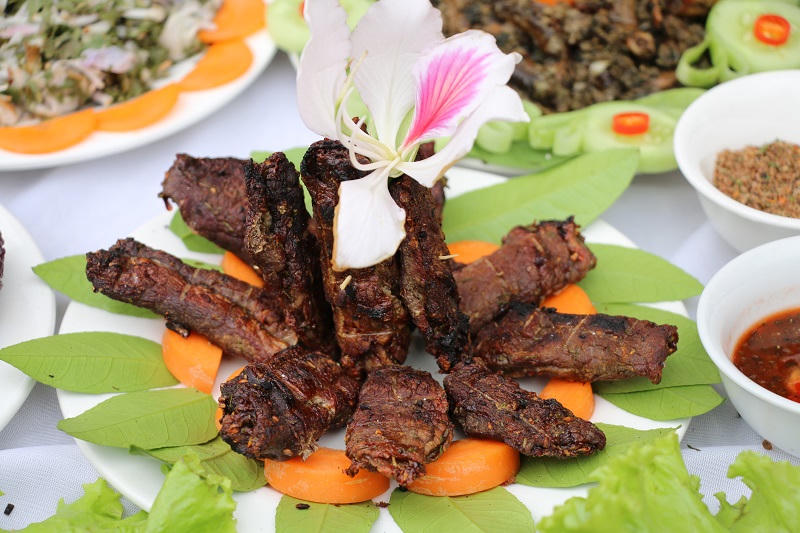 Thịt trâu hun khói (thịt trâu gác bếp) đặc sản của người Thái Tây Bắc, một món ăn quen thuộc trong mỗi gia đình.