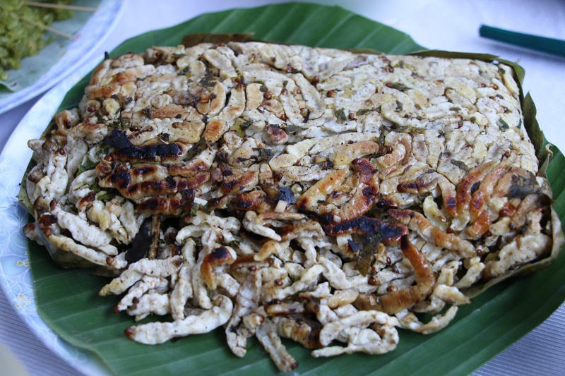 Món nhộng ong rừng ăn với quả trám đen.