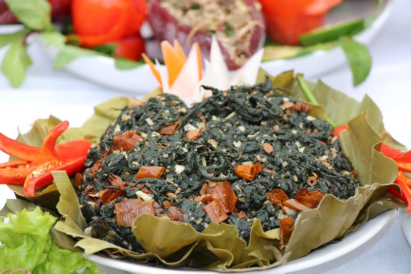 Món nộm rêu suối, một loại rêu thường mọc ở các con suối vào khoảng tháng 9, tháng 10 âm lịch đến tháng 4 năm tiếp theo.