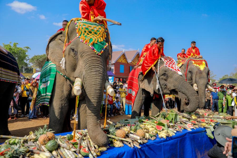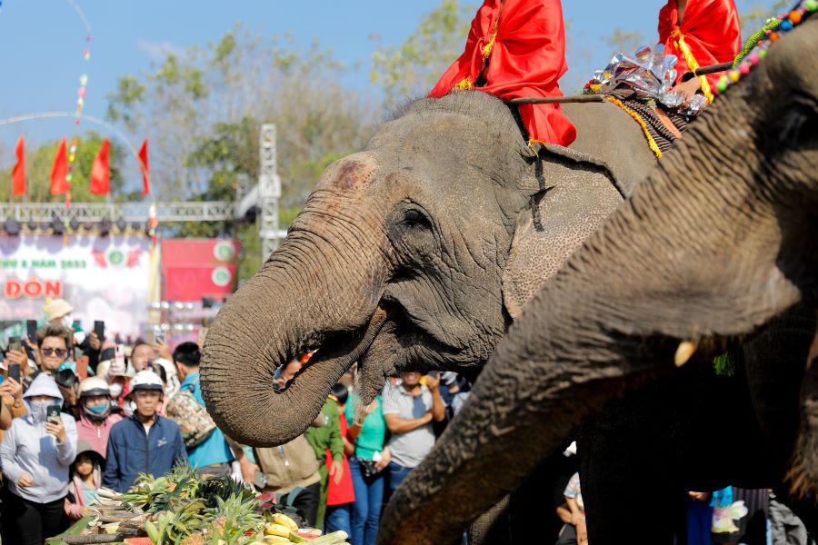 (PLVN) -Sáng 12/3, tại Trung tâm xã Krông Na (huyện Buôn Đôn, tỉnh Đắk Lắk) đã diễn ra "Hội voi Buôn Đôn 2023". Kỳ lễ hội này voi được ăn tiệc buffet, được trang điểm khiến cho du khách vô cùng hào hứng và thích thú.