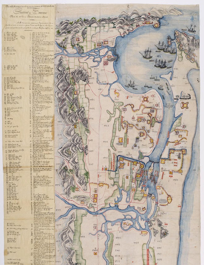 | Bản đồ Đà Nẵng xưa tìm được trong nhà viên quan năm 1859, trong bản đồ ghi rõ những địa điểm trọng yếu trong phòng thủ đường thủy |