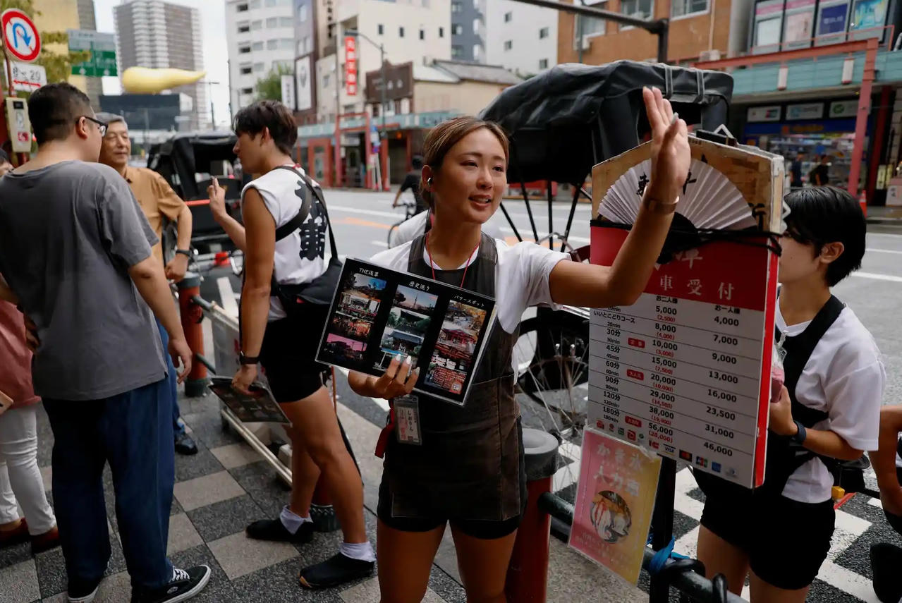 Liên đoàn Xe kéo Tokyo có 90 thành viên, trong đó khoảng 30 người là phụ nữ, chủ yếu hoạt động ở khu du lịch Asakusa. Ảnh: Reuters.