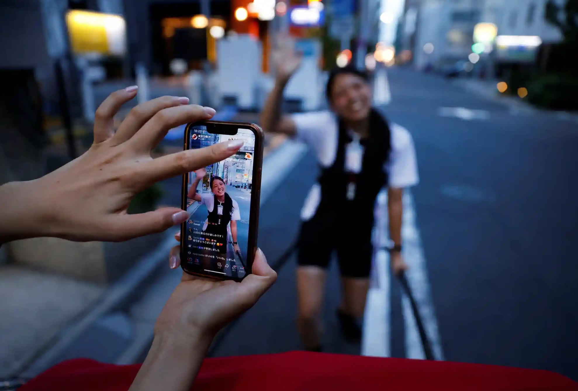 Akina Suzuki và Misato Otoshi (30 tuổi) phát trực tiếp trên mạng xã hội để quảng bá về công việc của mình. Ảnh: Reuters.