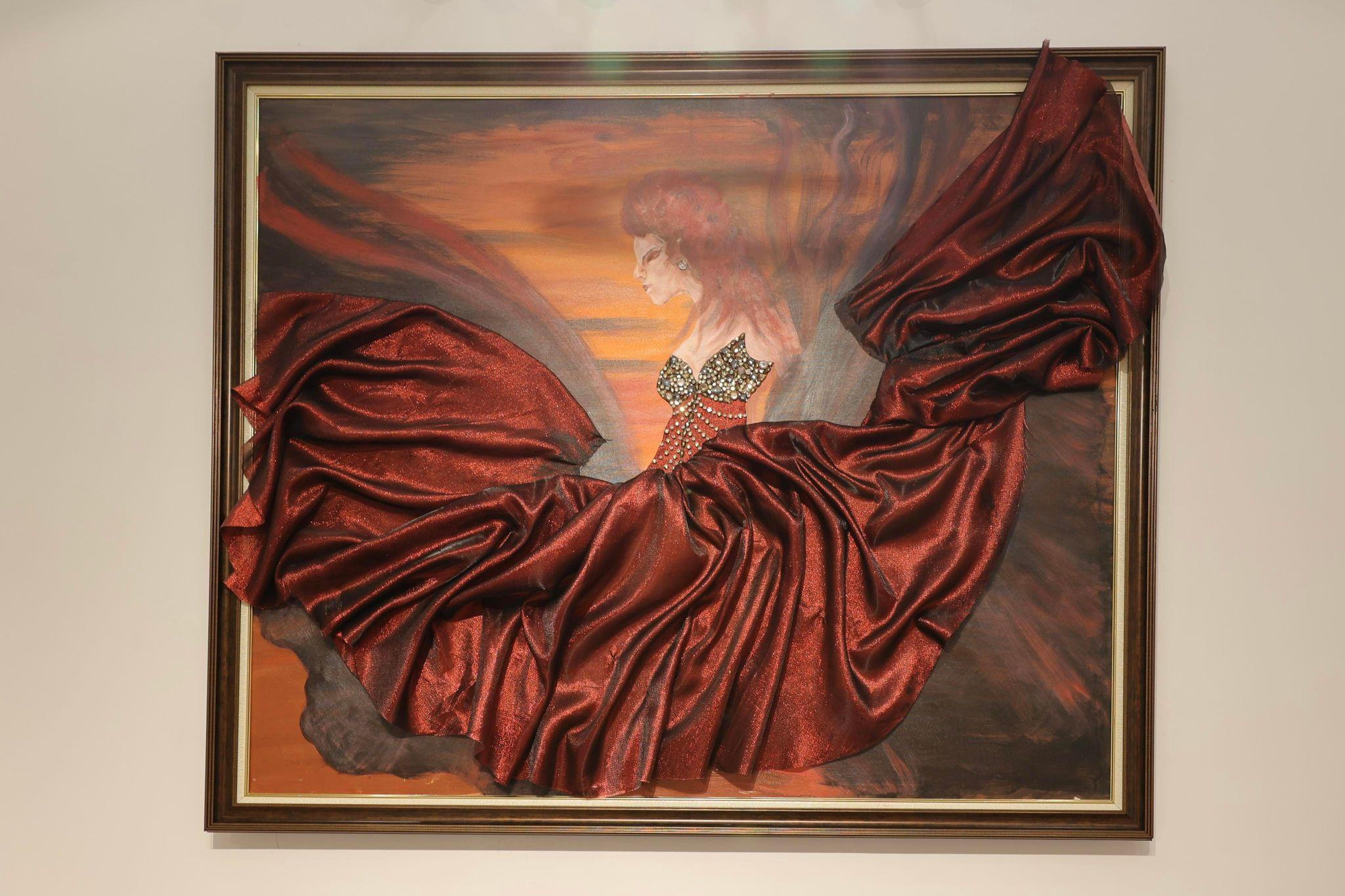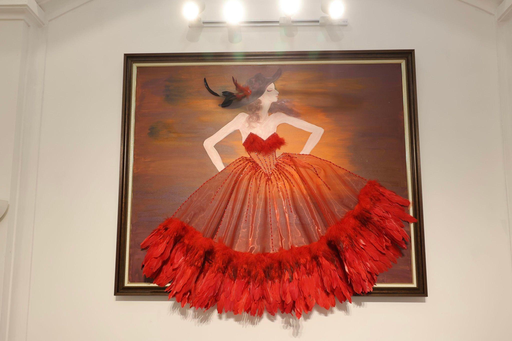 Độc đáo khi đưa váy dạ hội vào bức tranh. |