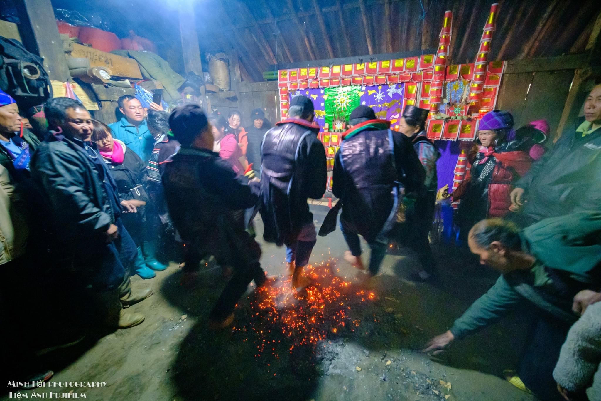 Những thanh niên được chọn sẽ dùng chân không để nhảy trên than |