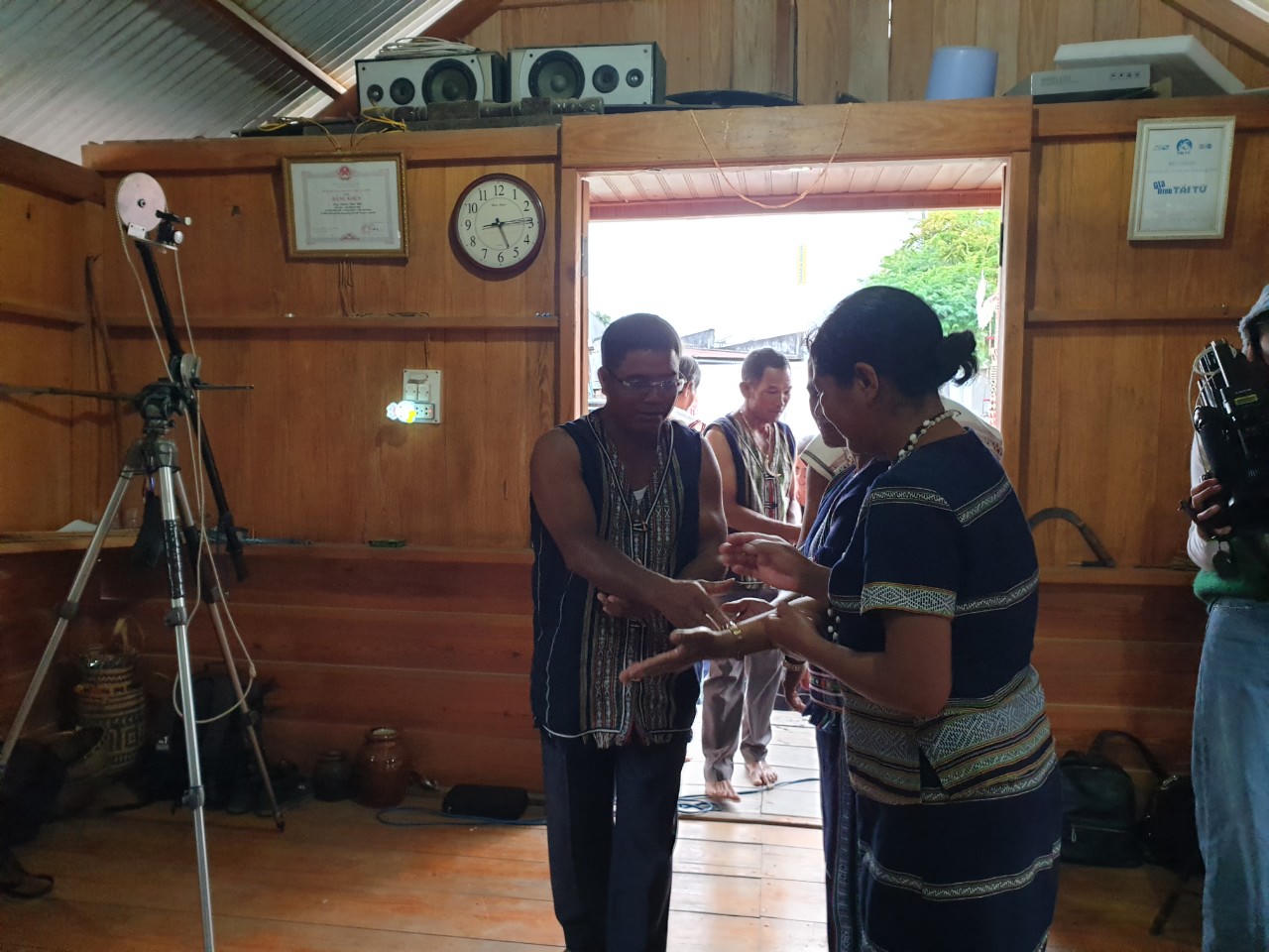 Hai họ tặng quà cho nhau. |
