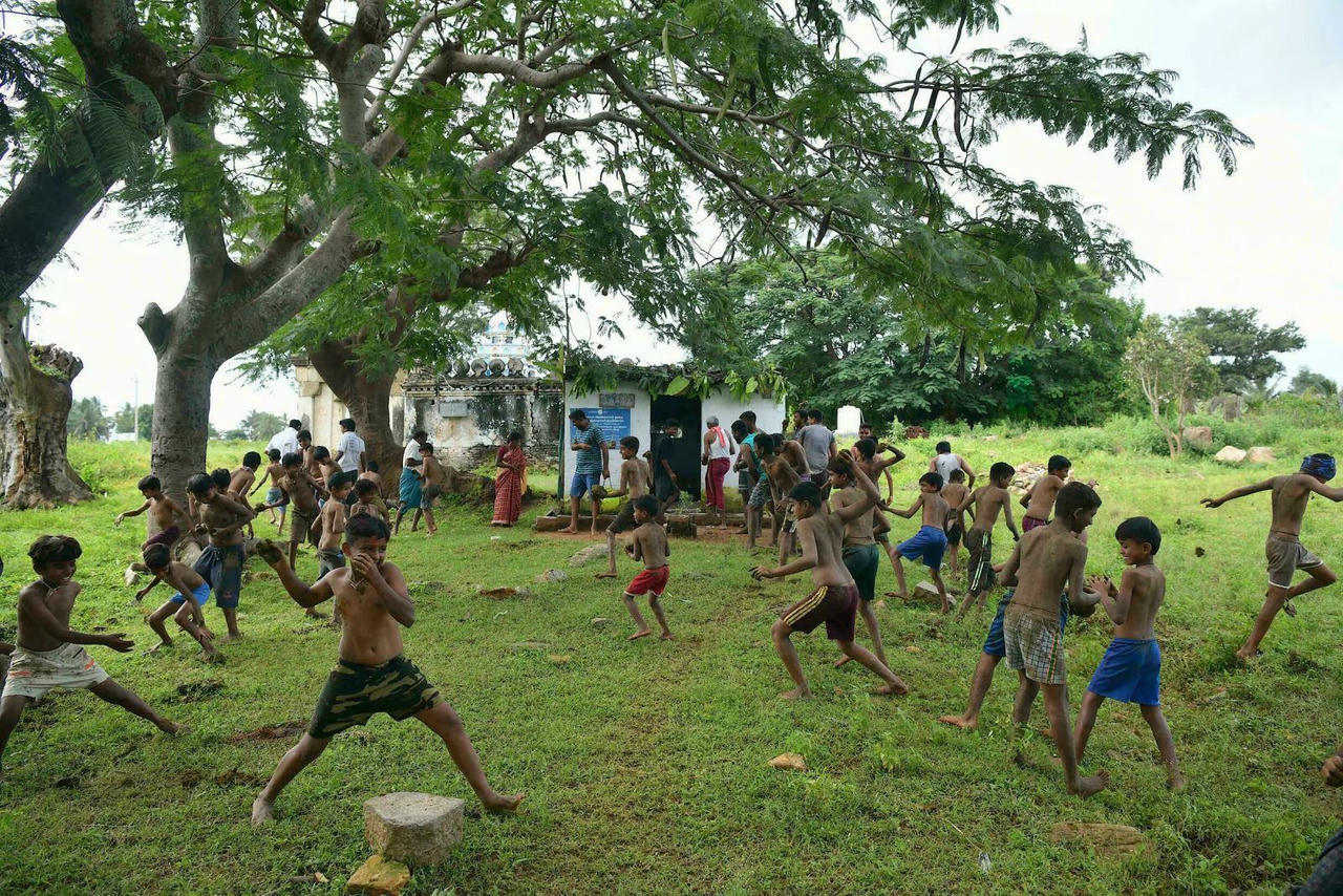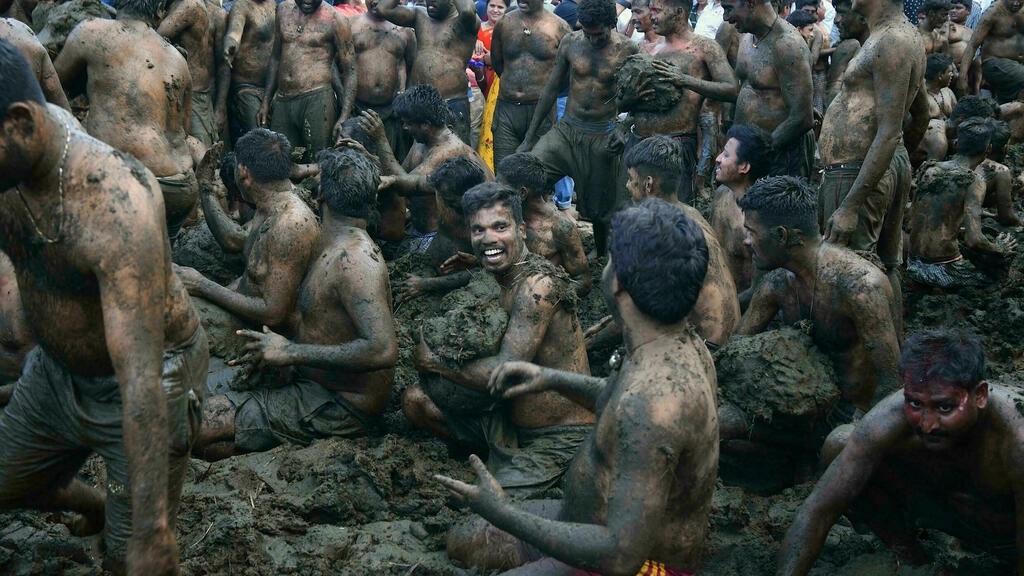 Cuối tuần qua, dân làng Gumatapura đã hào hứng tham gia lễ hội ném phân bò Gorehabba, đánh dấu sự kết thúc của Diwali, một trong những lễ hội Hindu giáo quan trọng nhất của người Ấn Độ.