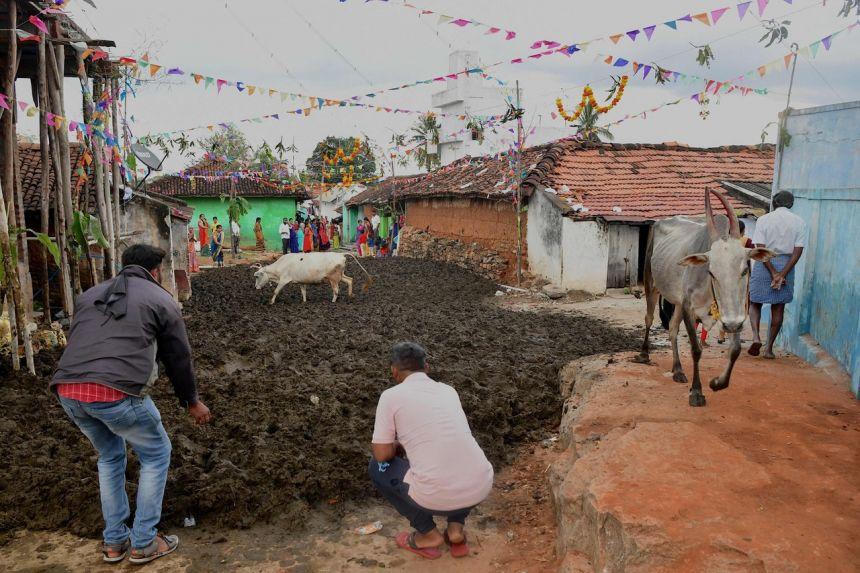 Phân bò được thu thập tại một khu đất trống trước lễ hội Gorehabba ở làng Gumatapura, phía nam Bangalore. Ảnh: AFP