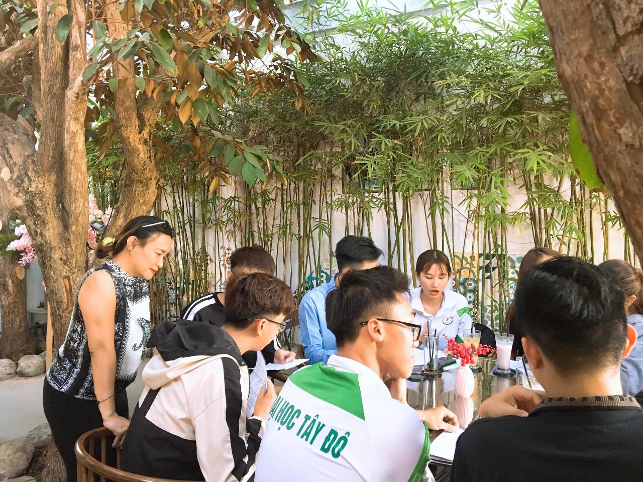 Cô Nguyễn Hiệp Thanh Nga cho biết, trong quá trình giảng dạy cô nhận thấy, trong việc giao tiếp tiếng Anh người Việt còn khá rụt rè, thiếu tự tin, khi gặp người nước ngoài thì không thể giao tiếp được vì lẽ đó cô và anh Tiến đã triển khai lớp dạy tiếng Anh giao tiếp miễn phí tại quán Thiền Coffee.