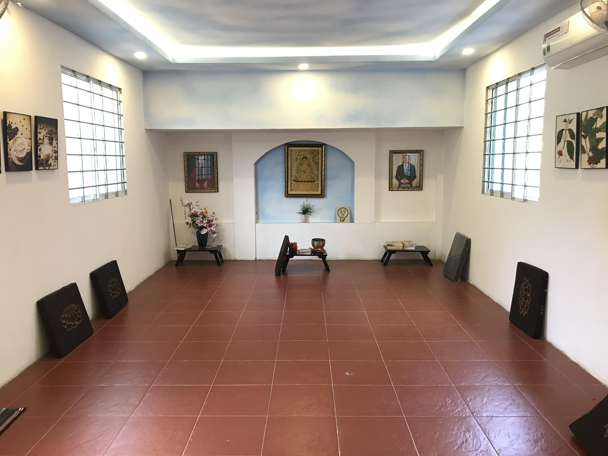 Tại quán, còn bố trí một phòng ngồi thiền diện tích khoảng 30m2, phía trong được bố trí đơn giản, tạo được sự thanh tịnh và trang nghiêm. Mỗi người có thể tự do vào ngồi thiền, nếu cần chủ quán sẽ tận tình hướng dẫn.