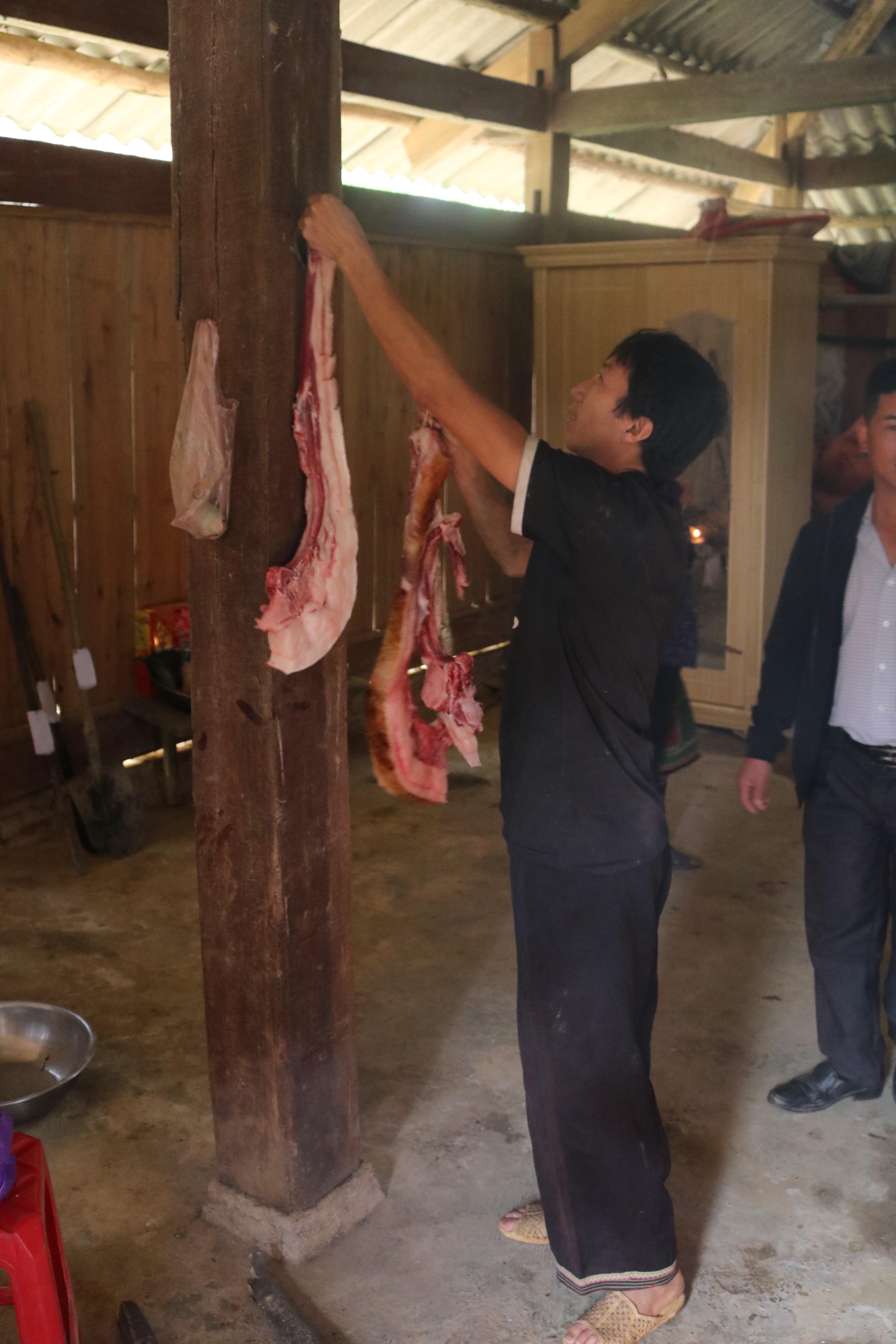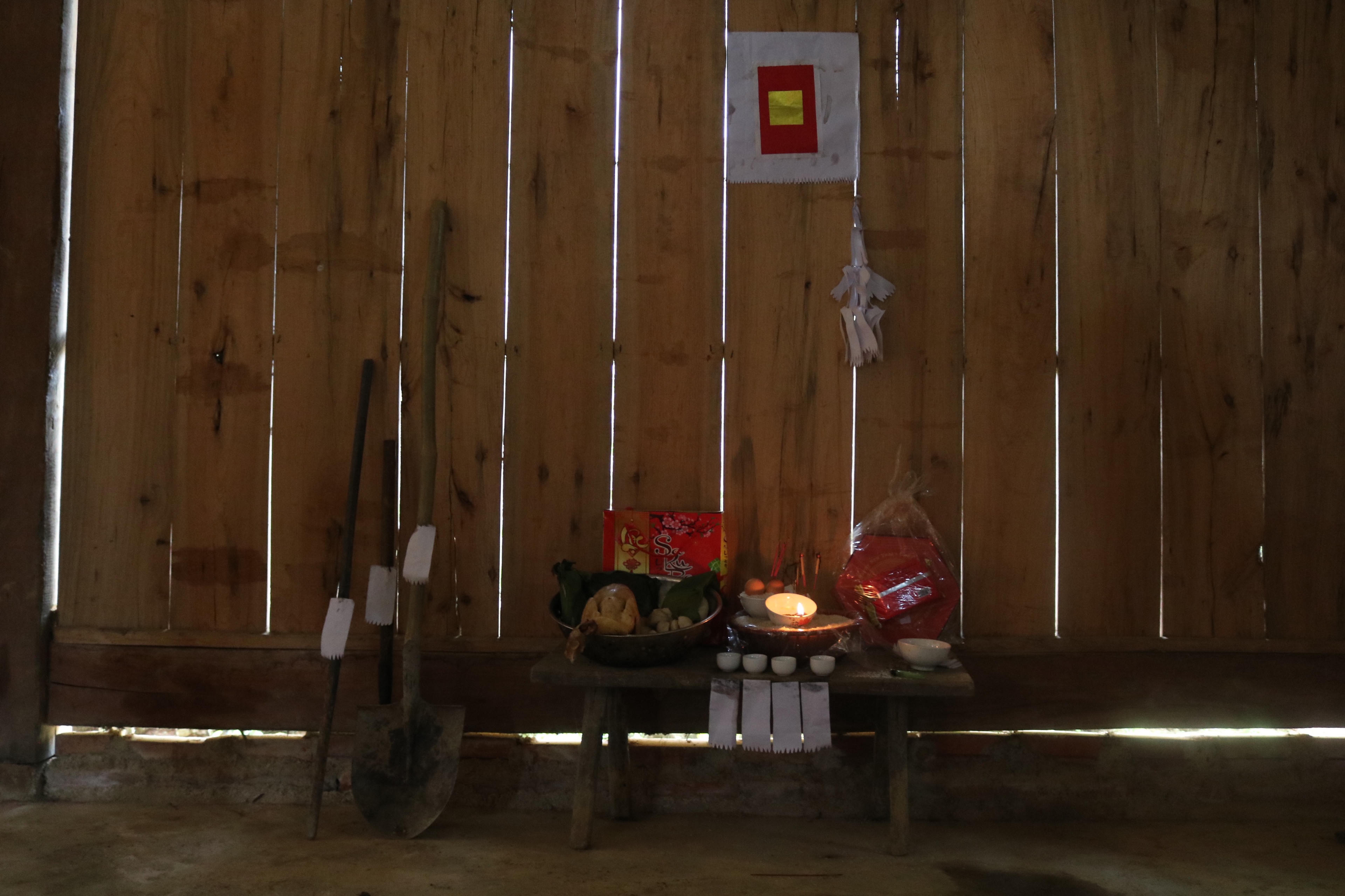 Cúng Tết là một nghi lễ rất quan trọng ở bản vùng cao Phú Thọ này. Người dân cúng để cầu cho ôn thuận gió hòa, cầu cho gia đình sức khỏe, được mùa… Nhà nào cũng có bàn thờ, trên bàn thờ đều có gà, gạo, trứng, bánh dày, tiền mã… Ngoài ra họ còn thờ xà beng, cuốc, xẻng thể hiện năm mới làm ăn gặp nhiều may mắn.
