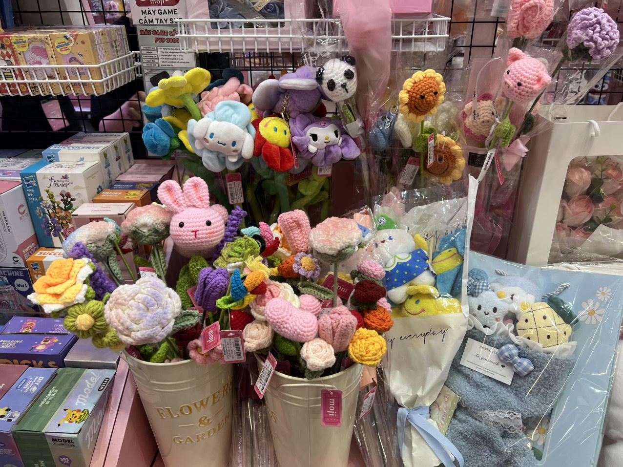 | Hoa móc len được nhiều bạn trẻ mua làm quà. |