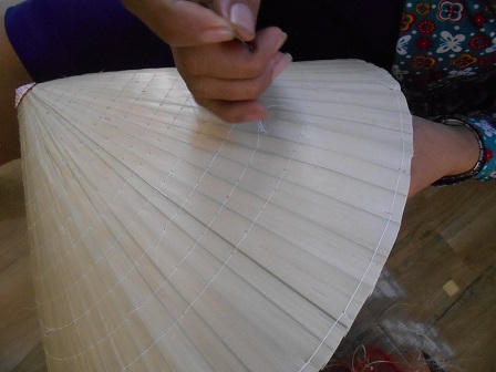 Nối nghề làm nón của bà, của mẹ, ở độ tuổi hơn 40, chị Nguyễn Thị Lệ Nhung (ngụ khu vực Vạn Thuận) là thợ lành nghề với kinh nghiệm làm ra những chiếc nón lá đẹp cả trăm như một. Chị bảo, để làm ra chiếc nón lá đẹp phải qua nhiều công đoạn, trong đó nguyên liệu lá nón chiếm gần phân nửa. Lá sử dụng để chằm nón thường có 2 loại là lá mặt cật dùng để làm nón thường và lá dặn dùng để làm nón tốt.