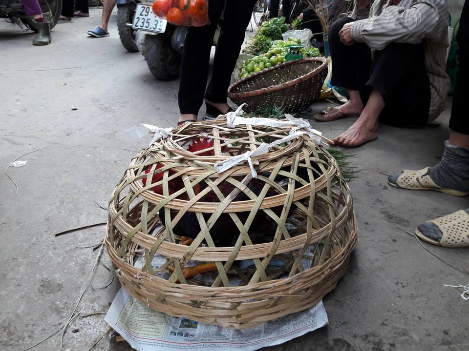 Nhưng chủ yếu vẫn là gà của các gia đình trong xã nuôi, được để vào những chiếc bu gà, mang ra chợ bán lấy may đầu năm
